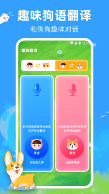 你是不是也想知道家里的猫咪和狗狗到底在想什么?它们是不是饿了渴了?是不是想出去玩了? 本应用是集猫语翻译和狗语翻译为一体的猫狗交流器,当然也是可以用来逗趣小野猫小野狗的动物翻译交流神器。 【人猫人狗互译】将我们人说的话转换为猫咪或狗狗可以听懂的语言,也可以将猫咪和狗狗的叫声翻译成我们可以听懂的话。 【逗宠语音】我们收集了海量不同猫猫狗狗在不同心情,不同场景时的叫声,方便主人与自己的爱宠玩耍,拉近与爱宠之间的距离。 【趣玩】支持为宠物建立档案,方便主人记录自己宠物的体重和生日等信息;也可以设置提醒事项,再也不会忘记带它打针洗澡;还可以将宠物的年龄换算为人类的年龄,看看你家宝贝今年多大啦!