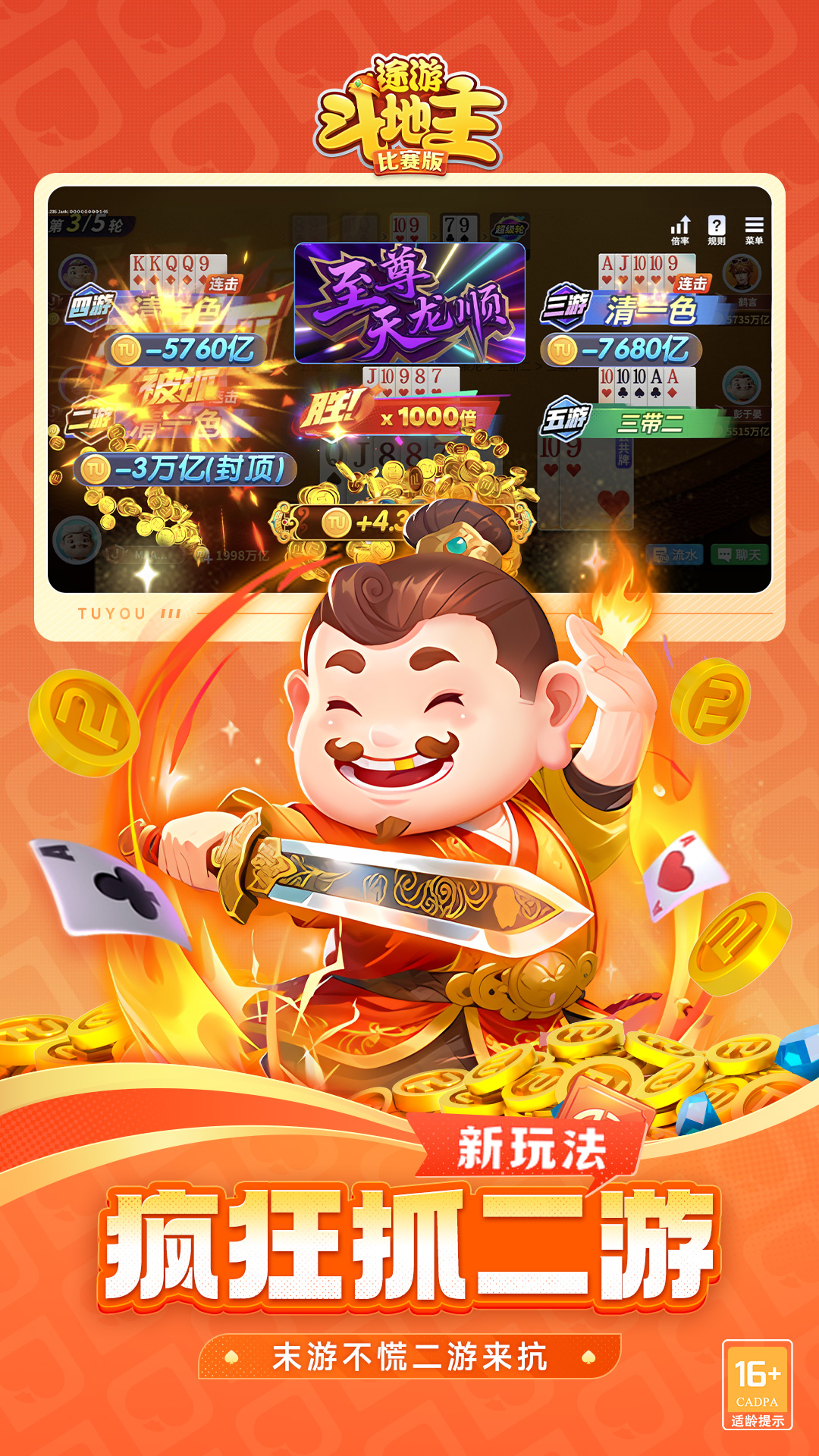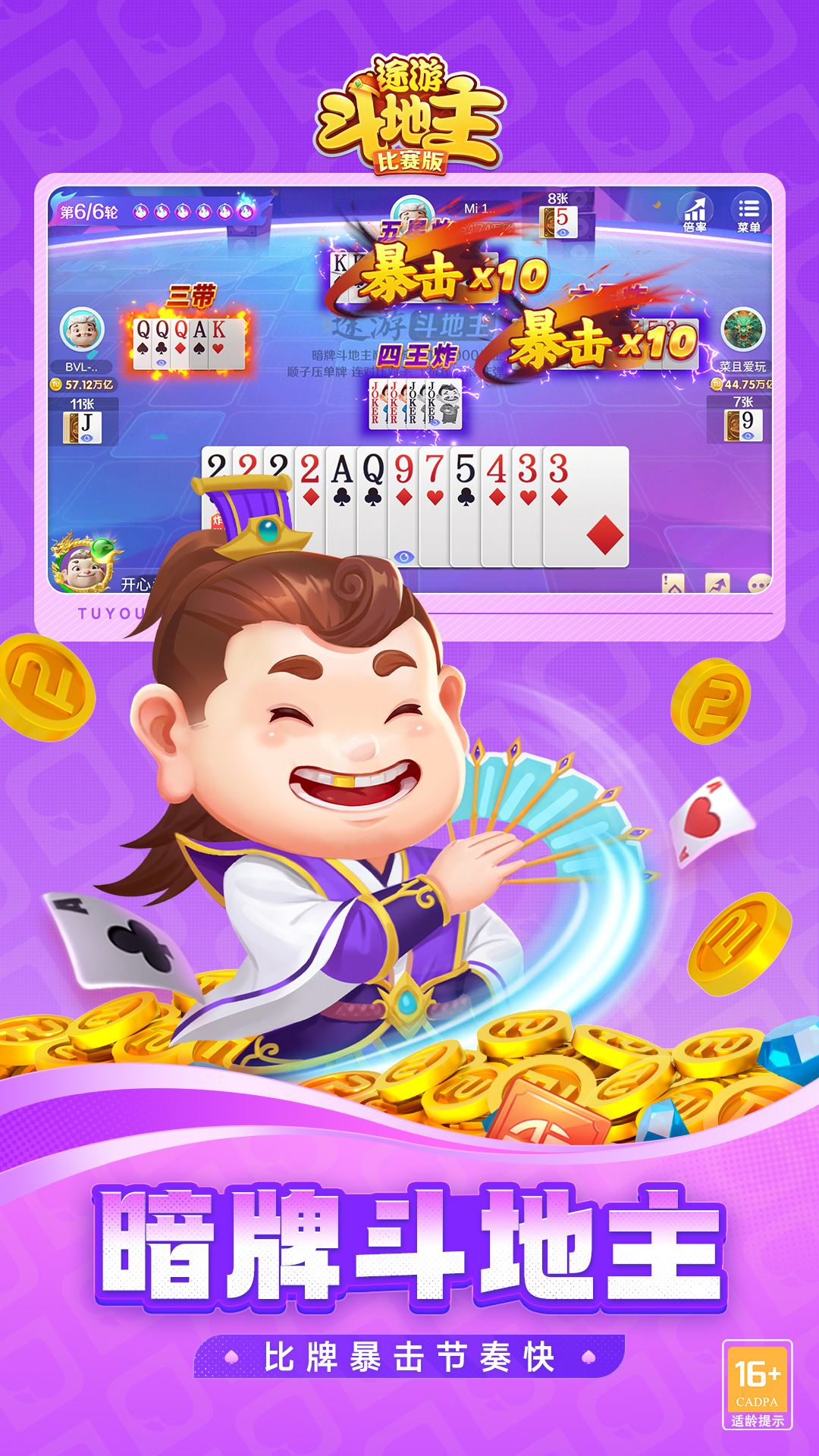 视觉体验升级,创新玩法暗牌斗地主,对比PK刺激升级!最新3D角色带给你与众不同的体验! 在这里,全国各地真人牌友实时对战,发牌公平,牌局专业,斗得过瘾,赢得畅快。 【主播力荐】 连炸、炸瞪眼、飚得快、百花七星等网红爆款直播霸屏,爽快解压! 【创新玩法】 跑得快升级飚得快,创新的赛事模式带来更多的竞技性、刺激感和趣味性! 【主播对战】 狙击主播、水友赛等主播互动玩法应有尽有,快来跟主播一决高下吧! 【玩法多样】 经典斗地主、不洗牌、超掼蛋、麻将、残局等多种玩法精彩纷呈,百玩不厌! 【公平竞技】 途游斗地主绿色无广告,玩家素质高,真人秒匹配,文明打牌,越斗越开心!