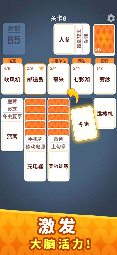 你知道“王安石”和“曾巩”有什么共同点吗?那“奶嘴”和“宝宝辅食”呢?如果这些对你来说是小菜一碟,那么恭喜你,这里就是你的主场! 这是一个让你脑内知识“各就各位”的奇妙地方。面对一堆看似风马牛不相及的卡牌,你需要快速反应,将它们统统归入正确的类别。 【你的任务】 擦亮眼睛,开动脑筋,将所有卡牌拖动到正确的分类之下。无论是“唐宋八大家”还是“电脑快捷键”,都需要你来让它们成功“配对”! 但要小心哦,每一步都很关键!你必须在规定的步数内完成所有整理任务,这不只是对知识储备的考验,更是对你策略和规划能力的挑战! 【你会在这里遇到】 五花八门的分类:上知天文,下知地理!历史人文、影视娱乐、生活百科……各种意想不到的分类组合,总有一个是你的知识盲区。 简单上瘾的操作:只需动动手指拖一拖,就能享受整理归纳的纯粹乐趣。操作极易上手,但想成为分类大师可没那么容易! 智慧与策略的碰撞:先放哪张牌?后整理哪个类别?步数有限,每一步都需要精打细算,才能在挑战中脱颖而出。 轻松解压的画风:清新的界面,有趣的卡牌设计,让你在轻松愉快的氛围中,完成一次又一次的脑力冲刺。 别再让你的知识点们“无家可归”啦!是时候展现你惊人的归纳整理能力了。我们准备了海量关卡,从生活常识到冷门知识,就等你来挑战,给它们一个完美的归宿!