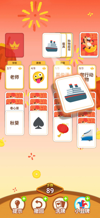 看看桌面上那些乱糟糟的卡牌,感觉自己的强迫症都要犯啦! 别担心,现在就是你大显身手的时刻! 这儿有一场奇妙的卡牌归类之旅,正等着你来挑战。你需要做的很简单:动动你聪明的手指,将五花八门的卡牌们分门别类,把它们一一送回正确的位置。从杂乱无章到井井有条,每一次成功的整理都会带来满满的治愈感和成就感! 趣味分类,万物皆可成牌 无论是可爱的动物、诱人的美食,还是生活中的日常用品,在这里都能变成一张张等待你归类的卡牌。根据“皇冠牌”的指引,开动脑筋,将它们放到正确的牌堆中吧! 轻松拖拽,指尖丝滑体验 操作超级简单!只需轻轻一点,然后拖动卡牌到目标位置即可。随时随地都能来上一局,享受解压又益智的轻松一刻。 步步为营,挑战你的策略 注意啦,你的每一步操作都会被记录!你必须在规定的步数内完成所有卡牌的分类。是深思熟虑找出最优解,还是随心而动?这不仅考验你的知识储备,更是对你逻辑思维的一次大挑战! 准备好了吗?立即加入,开启这场益智又解压的卡牌狂欢,看看你能闯到第几关!