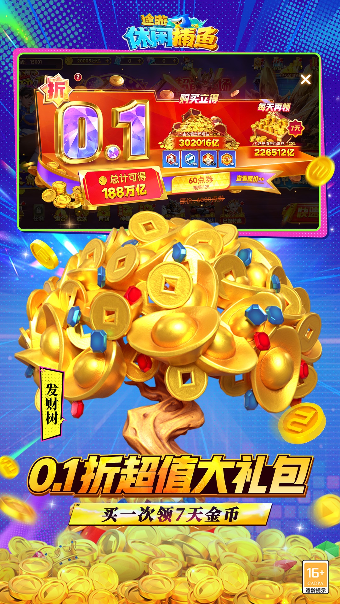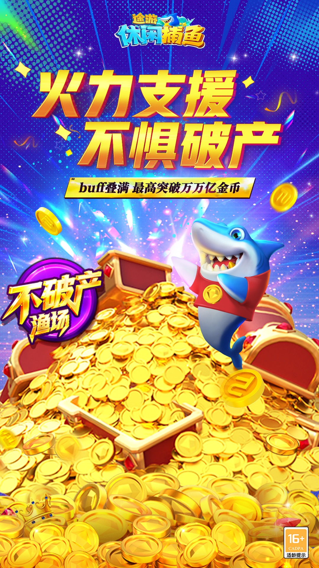 【全新礼包码】VIP666 BY888 DL666 【兑换方式】打开游戏-右上角-福利-兑换码 【新赛季渔场机甲狂潮来袭】 倍率突破赛季养成上线!开火威力大升级,超能引擎金币加成,积分兑换赢好礼,更多福利内容等你亲自来解锁! 【街霸II(Street Fighter II)官方正版联动,今日开战!】 女皇春丽降临,霸气踢翻渔场!全新联动活动登场,捕获BOSS参与抽奖,累计进度兑换大奖! 【全新引擎研发,3A画质影视级体验】 《途游休闲捕鱼》采用全新引擎打造,超强的美术表现力,复刻街机经典玩法,多个奇幻3D渔场, 捕获各种神秘强大的BOSS,炫酷的场景、超高清的画质,给您绝对震撼的视听盛宴。 【超炫3A画质】 画面华丽升级,重新定义捕鱼游戏品质。超高清3D画质,影视级视觉享受。风情万种的美人鱼、神秘尊贵的神龙太子、坐拥万金的史前巨鳄、未来科技的机械狂鲨、掌控黑暗的远古暝兽等,华丽酷炫的BOSS觉醒特效,全方位打造次世代捕鱼游戏,给您身临其境的沉浸式体验。 【捕鱼超爽体验】 全新渔场!爆率升级!倍率高!掉率高!超高的爆率,大额的金币数值,给您想不到的爽快体验。万人在线,快来称霸渔场吧! 【超全新玩法】 丰富多彩的超新玩法,神魔令、神器锻造、卡牌收集、猛兽抓捕、宝藏悬赏等多种玩法开启,丰厚惊喜,全方位体验不只是捕鱼的乐趣,精品街机捕鱼全新玩法,一起欢欢乐乐捕鱼去~ 【每日豪华福利】 每日登录领取海量惊喜,海量金币送不停。节日活动、炫酷翅膀、专属定制的炮台皮肤等多重惊喜。更有秒天秒地的激光,横冲直撞的钻头,倾尽神力的雷霆一击,毁灭一切的狂暴技能!快跟我一起来玩捕鱼吧!