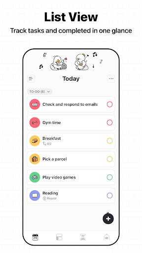 With versatile planning templates for all scenarios, managing schedules and todos becomes effortless. Your warm and comforting duck companion, JOY, is here to be your personal cheerleader, turning plans into easily achievable goals.<br>Make Plans<br>Planners, Pomodoro timer, notes, View, widgets, calendar, countdowns, and todo lists. Whether you're creating project plans, managing schedules, or focusing on work and study, everything becomes intuitive and seamless.<br><br>Achieve All Goals<br>Goal Breakdown: Weight loss, certification exams, self-improvement... All goals across various scenarios can be automatically broken down into stages, making it easier to achieve step by step.<br><br>Fun and Creative Methods<br>Customization: change themes, icons, stickers... freely<br>Widgets: Your Joy always here for you.<br><br>Comprehensive Features<br>✦ Clear Priorities:<br>Task prioritization based on quadrants, with single-column lists tailored to your habits.<br>✦ Costume Rewards:<br>Unlock exclusive costumes for completing tasks—your efforts deserve recognition.<br>✦ Quick Input:<br>Support for text, voice, and other input methods for fast task creation.<br>✦ Time Control:<br>Link individual tasks to the Focus Pomodoro timer, with customizable reminders, deadlines, and repeat options.<br>✦ Visual View:<br>Track activities efficiently with weekly, monthly, and yearly views for easy reference.<br>✦ Focus Timer:<br>A scientifically designed Pomodoro timer to help you maintain energy and focus.<br>✦ Review Notes:<br>Capture daily reflections and insights in a quick and convenient way.<br>✦ Progress Statistics:<br>Multi-dimensional data analysis to track progress and inform continuous improvement.<br>✦ Widgets:<br>Countdowns, planners, and other widgets for home screen & lock screens.<br><br>Download Planjoy to discover more!