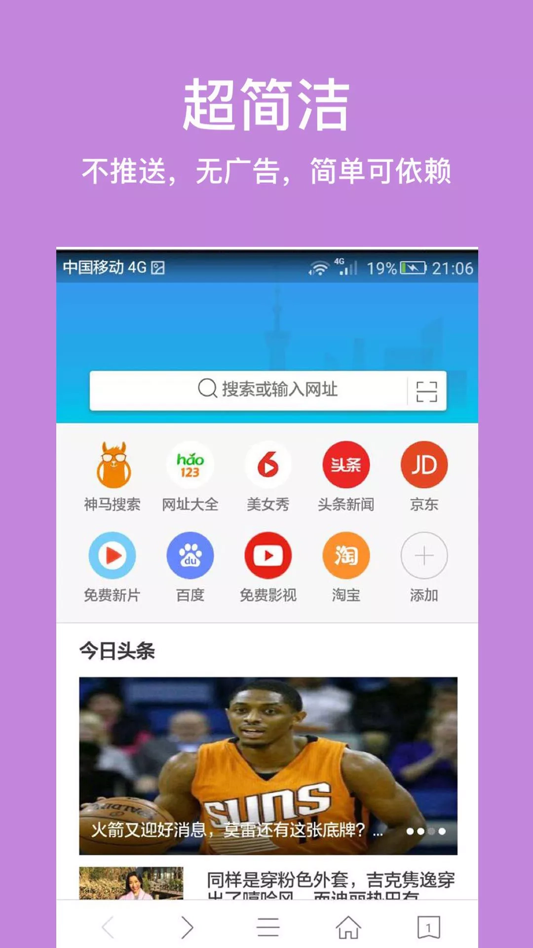 上报广告,定制拦截,送您一个清爽的浏览器。 【简洁浏览器】超低内存占用,极速轻巧。支持各大主流搜索引擎。只提供每日精选新闻,极简设计风格,没有广告、推送和过度新闻,大大的节省了您的上网流量,节省了手机内存资源,给您一个绿色的浏览器,还您一个简洁的上网环境。 【轻应用】接入了流行的网站入口,收录有百度搜索、网址导航、新浪新闻、头条新闻、京东购物、糗事百科、淘宝、爱奇艺、酷狗音乐、虎扑体育、知乎、搜狐、腾讯新闻、天猫、糯米、唯品会等知名网站,您再也不用为找不到网址而发愁,久久浏览器帮您搜录您常用的网址,为您提供快速的上网体验。 【收藏与历史】久久浏览器可以帮您收藏今日头条、微信文章、抖音、知乎、微博、火山小视频、快手等众多平台上的精彩内容,您也可以分享给其他朋友。久久浏览器会记录您的访问记录,方便您查找您的浏览历史。 【视频播放】支持优酷、爱奇艺、腾讯视频、火山视频、抖音短视频、搜狐体育、乐视、芒果TV、Bilibili等大的视频网站的视频播放。 【高速下载】多任务下载模式,下载更快速,同时支持断点续传的下载模式,智能判断网络环境,下载历史查看,下载暂停与继续,可以修改下载文件位置,资源空间不足等智能提示。 【广告标识】在任何网站发现广告都可以标识广告,并上传给运营人员,久久浏览器有专人处理这个广告,在您下次访问的时候拦截广告,保证您的上网体验。同时久久浏览器的其他用户也可以享受到您的广告标识带来的收益,顺利拦截广告,不受该广告的困扰。 【省流量】久久浏览器提供了无图模式,可以在流量不足的时候,开启无图模式,可以为您节省流量,您也可以在WIFI环境下预先保存您想浏览的网页,在4G上网的时候,访问本地预先下载好的网页,完全不需要任何4G流量。 【极速启动】无启动广告,无启动欢迎页,无启动读秒,直接给您最直接的上网页面,简化您的上网步骤,提升您的网上冲浪体验。 如果您有新的上网体验需求或者有问题要反馈,欢迎加入官方QQ群:774615751,让我们一起打造我们的浏览器,提高我们的上网体验~~~