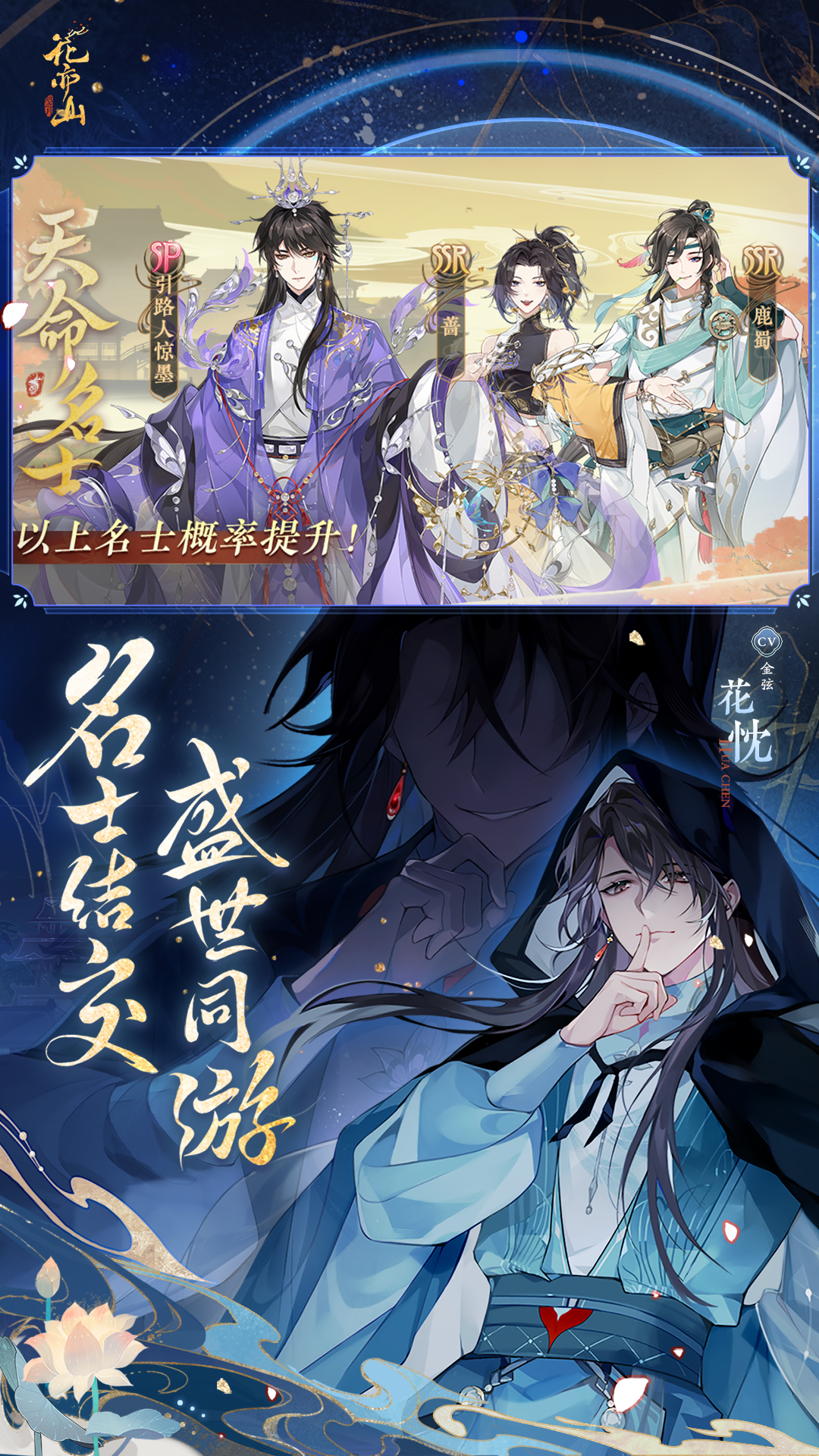 花亦山心之月「蝶舞新章」全新活动剧情将于12月31日开启!「SP引路人惊墨」震撼登场!时移世易,避世百年对如今的蝶谷秋家,仍是最优的解法吗?卜算者,最难算自身命数。且看在惊墨带领下,秋家又将做出怎样的改变!更有元旦限时花诏令福利待你上线领取~<br><br>【名士结交,盛世同游】<br>是杀伐决断的首辅,也是思想深邃的先驱; 是万人敬仰的亲王,却满怀无人理解的孤寂;世人皆说大公主气盛专强,又有谁曾得见其情纯真……与各色名士缔结盟约,解锁TA不为人知的故事,感受其中的粼粼波光与惊涛骇浪。<br><br>【权谋爽剧,风云迭起】<br>从皇家书院的闲适雅致,到朝堂之上的波谲云诡,看似平静的大景早已暗潮涌动,你能否在世家纷争的漩涡中找到治世之道?头顶风云变幻,脚下步步惊心。这一路,有明枪暗箭,更有惺惺相惜。<br><br>【颜彩金描,国风巨制】<br>以中国传统色绘制东方的古典神韵,以描金工艺勾勒盛世的雅致华贵。飞檐斗拱的亭台楼宇、恢弘壮丽的宫殿建筑,一展宣景的盛世气度;其间的岸柳飞花、碧空流云,尽显国风的无限意境。<br><br>【豪华声优,视听盛宴】<br>游戏特邀吴磊、苏尚卿、杨梦露、陶典等顶级声优倾情献声,殿堂级国风音乐大师林海配乐,在耳端构筑纷纭世界,以听觉呈现人物悲欢,营造极致沉浸的声画体验。<br><br>【美妆华服,互动休闲】<br>点朱唇、贴花钿,自由捏脸国风美妆。理袖带、弄金钗,华服万千随心搭配。还可品茶会友,行飞花令,打理花圃,在紧张刺激的权谋斗争之余,悠享惬意的闲适时光。