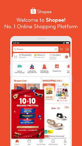 趁着双10,Shopee每日超级品牌日和顶级品牌,尽享超值优惠!9月26日至10月13日,Shopee每日特价商品5折优惠,享受最低价格,更有免运费、无最低消费、Shopee次日达保证等众多惊喜!别再犹豫,抢购最棒的品牌商品!<br><br>随时随地购物<br><br>• 轻松浏览和购买我们种类繁多的商品,包括健康与美容、时尚配饰、手机与电子产品、汽车、家居生活、母婴与玩具等等。<br>• 在Shopee Mall购买100%正品,来自官方品牌。<br>• 使用我们的返现券和惊爆特卖,享受超值优惠。<br>• 参与我们每年一度的9.9大促、11.11大促和12.12生日特卖等活动,享受更大优惠和更低价格。<br>• 超过 30,000 家指定门店免运费(西马限重 5 公斤,东马限重 1 公斤)<br>• 购物、每日签到等均可赚取 Shopee Coins,节省更多<br>• 在 ShopeeFood 在线订购外卖,享受低配送费<br><br>安全的在线环境<br><br>• 明智购物 – 浏览卖家评分和评价<br>• 无风险支付 – Shopee 保障仅在确认收到订单后才会发放款项<br>• 强大的物流支持 – 通过最新的配送信息,追踪订单从付款到送达的全过程<br><br>无缝结账和安全支付方式<br><br>• 激活您的应用内 ShopeePay 电子钱包,享受无缝结账体验,并享受 ShopeePay 独家优惠和返现<br>• 通过我们直观的界面体验快速便捷的购买流程<br>• 选择您喜欢的方式付款 – 银行转账、信用卡或借记卡、Apple Pay、货到付款 (COD) 或在便利店现金支付<br>•使用 SPayLater 先买后付,享受长达 12 个月的分期付款。<br>• 选择在指定 Shopee Mall 品牌门店提货。<br><br>*SPayLater(包含次月付款和分期付款选项)是一种为用户提供灵活付款方式的融资解决方案。SPayLater 已获得 Amanie Advisors(“Amanie”)的伊斯兰教法认证。Amanie 是一家全球伊斯兰教法咨询公司,也是在马来西亚证券委员会 (SC) 注册的伊斯兰教法咨询公司。<br><br>每月将收取总付款/订单金额 1.5% 的手续费。如果未在规定时间内付款,将收取 RM10 的滞纳金,并且 SPayLater 和/或 Shopee 帐户将被暂停。<br><br>SLoan 由 SeaMoney Capital Malaysia Sdn Bhd 提供,该公司已根据地方政府发展部 (KPKT) 1951 年《放债人法》获得放债许可证(编号 WL7728/14/01-2/240225)。 SLoan 的主要优势如下:<br><br>1. 快速激活、审批和发放现金贷款,最高贷款额为 20,000 令吉<br>2. 分期付款期限为 3 至 24 个月<br>3. 每月 1.5% 的优惠利率<br><br>最高年利率 = 18%<br><br>贷款示例:<br>贷款金额 = 1,000 令吉<br>印花税 = 0.5% * 1,000 令吉 = 5 令吉<br>认证费 = 5 令吉<br>发放贷款 = 1,000 令吉 - 5 令吉 - 5 令吉 = 990 令吉<br><br>贷款期限 = 3 个月<br>利息金额 = 3 * 1.5% * 1,000 令吉 = 45 令吉<br>总还款额 = 1,000 令吉 + 45 令吉 = 1,045 令吉<br>每月分期付款额 = RM1,045/3 = RM348.33<br><br>地址:吉隆坡中谷城 Lingkaran Syed Putra 南点大厦 25 楼,邮编 59200<br><br>在线购物应用程序亮点<br><br>• 按类别、品牌和地点搜索<br>• 应用程序独家优惠和每日优惠通知<br>• 个性化产品推荐<br>• 客户评分和评论<br>• 购买和每日签到即可赚取 Shopee Coins<br>• 订单追踪<br>• Shopee 保障,100% 保障<br>• 更多精彩即将推出<br>-------------------<br><br>欢迎留言告诉我们 - 我们期待您的反馈!<br>访问我们的网站:www.shopee.com.my<br>在 Facebook 上点赞:facebook.com/ShopeeMY<br>在 Instagram 上关注我们:@shopee_my<br>在抖音上标记 #MYShopeeCheck:@shopeemy<br>查看我们的博客:https://shopee.com.my/blog/