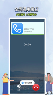 网络电话高安全性、防骚扰、保护隐私、能突破手机黑名单,自动隐号,无需设置,一键突破手机黑名单,隐藏通话详单,运营商都无法查询,轻松实现免费网络电话、省钱电话、隐私电话、加密电话、高清电话。 软件功能: 【智能】无需流量,在3G/4G/5G环境下,无WIFI打电话,快速接通,完美突破手机黑名单。 【安全】防止电话被标记、破译;通过内置加密算法终端对信号全链路加密,机密性好,防止外泄。 【高清】采用国际先进网络电话语音技术,拒绝延时,杂音,信号丢失,真正实现电信级通话质量,与正常移动通话无差异。 【售后】支持全渠道QQ、微信以及电话客服,工作日午休服务,全心处理售后服务。 不管交友、租房、买卖房屋、医疗、生育、二手交易、找工作、打车、调研、查岗、情侣吵架,微信电话被拉黑,还是电销、美团、众包、快递,均可轻松使用,省钱,方便,安全通话。 人工客服联系方式:请在APP内-我的-人工客服获取联系方式 工作时间:周一—周六早9:00至12:00,14:00—18:30 如遇不在服务时间或者节假日,请您点击我的—帮助中心进行查询,或者在客服中心进行留言,我们会在第一时间为您处理。
