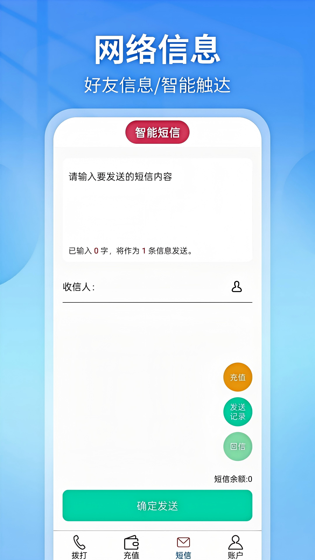 接通网络电话——对方手机无需安装软件,还不受对方软件限制,让通话变得顺畅且无缝!<br><br>你是否曾因为被屏蔽而无法与重要的人取得联系?你是否厌倦了等待对方下载同样的通话软件才能畅快聊天?如果你对这些问题感到困扰,那么接通网络电话将是你的完美解决方案!<br><br>智能短信发送:如果不想打电话,或者电话打不通,都可以试试这个短消息功能哦,智能发送,信息传递安全无忧。<br><br>恢复沟通,轻松联系!<br><br>接通网络电话引领着通话技术的革新。我们深知屏蔽给你带来的麻烦和无奈,因此,我们推出了独特的恢复沟通功能。无论你是被误会、纠纷或其他原因屏蔽,接通网络电话都能助你重新建立沟通的桥梁。无需再忍受无法联系到亲朋好友或合作伙伴的困扰,我们为你提供了一条重新连接的通道。<br><br>无需等待,即时通话!<br><br>为了提供更加便捷和高效的通话体验,接通网络电话引入了无需等待的特性。你不再需要等待对方下载相同的软件或注册账号,只需使用接通网络电话,即可与任何电话号码进行实时通话。无论是紧急情况、商机洽谈还是即兴聊天,接通网络电话都能让你迅速建立联系,让沟通变得轻松自如。<br><br>高清音质,畅享清晰通话!<br><br>在接通网络电话中,我们注重通话质量的提升。采用新的音频传输技术,我们确保每一次通话都能呈现出清晰、逼真的声音效果。无论你是在嘈杂的街头、拥挤的公交车上还是在宽敞的会议室里,接通网络电话都能为你提供出色的通话体验。我们的降噪功能还能有效抑制背景噪音,让你的声音传递得更加纯净清晰。<br><br>安全保障,让通话无忧!<br><br>通话的私密性是我们重要的承诺之一。接通网络电话采用先进的加密技术,保护你的通话内容免受任何形式的泄露和窃听。你可以放心使用我们的应用进行通话,享受安全无忧的通话体验。我们的恢复沟通功能也经过严格的安全测试,确保在使用过程中用户的个人信息得到充分保护。<br><br>现在就加入接通网络电话的世界吧!让通话变得顺畅且无缝!无论是在工作中还是生活中,接通网络电话都能满足你对通话的各种需求。快来下载我们的应用,注册账号,开始畅快通话吧!体验一次恢复沟通、无需等待的通话革命!让通话变得更简单、更自由!