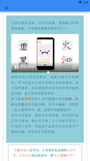 《掌上汉语字典》是一款功能丰富、实用性强的汉字查询APP,适合所有学习中文的人士使用。字典收录超过3万汉字,容纳了现代汉语通用字、常用字、文言用字和生僻字。 应用特色: 1、免费使用:功能强大且免费使用。 2、收录全面:收录3万汉字,内容详尽。 3、界面简洁:界面规范简介,便于操作。 4、属性全面:包括拼音、注音、部首、笔画、结构、五笔、仓颉,统一码,四角码,郑码、笔顺等。 5、解释详细:引用古文和例证,解释全面详尽。对照康熙字典和说文解字,更加易懂。 6、英文互译:对照英文翻译,非中文人士也可以学好中文。 7、快速检索:拼音检索、部首检索、笔画检索、结构检索等多种检索方法,操作便捷。 8、模糊搜索:支持输入汉字、拼音、注音、五笔、仓颉、统一码、四角、郑码等模糊搜索。 9、标准读音:标准汉字读音,帮助学习拼读。 12、收藏功能:支持将汉字收藏到云端。 轻松学汉字,传播中华文字,欢迎广大热爱中文的各界人士下载使用。 联系方式: 邮箱:admarket@appfly.cn