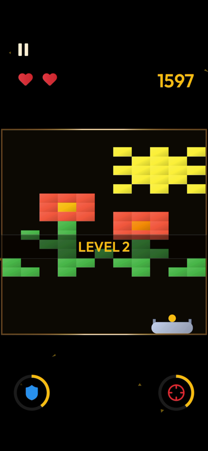 这是一款基于真实物理碰撞模拟的超级打砖块游戏。 控制上下挡板接住小球,消灭所有砖块,你就胜利了! 简单而富有乐趣,缅怀经典! 怎么玩? 用挡板接住反弹的小球,不要让它着地。 如果小球着地,小球变成红色并且不能击碎砖块 游戏中可以让小球碰撞到闪烁的变身道具,这个可以让小球变身并且提高速度 挡板不同位置触到小球, 小球反弹的角度不一样,根据这个可以控制小球反弹的角度 当在固定的时间里击碎所有的砖块,游戏结束,闯关成功