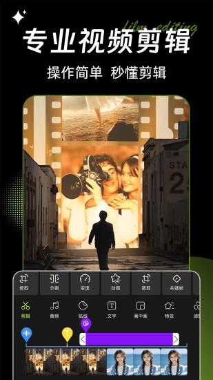 视频编辑,视频剪辑,AI剪辑视频编辑器是一款Android平台的应用。视频剪辑、视频制作、视频美化工具,AI剪辑视频编辑器专注于小影片、短视频剪辑的拍摄、编辑功能。 免费视频音乐无限畅想制作,音乐视频编辑不收费,无限制作 动画贴纸、胶片滤镜、视频编辑、视频美颜、视频制作、视频配乐 【视频主题】视频主题包含亲情、友情、爱情、萌宠、爱豆、宝贝、节日、美食、嘻哈、个性、文艺、时尚、趣味、简约、在路上、珍贵回忆、美好时光 【视频滤镜】视频滤镜包含美颜、魔焰、日系、美白、怀旧、复古、Lomo、宝丽来、黑白、HDR、光晕、浮雕、素描。 【音乐相册】音乐相册管家AI剪辑视频编辑器支持从相册自由混搭照片、视频、编辑成音乐相册、照片电影、音乐相册制作 【视频编辑】视频片段编辑、剪裁、分割、快放、慢放、旋转缩放、倒放、压缩、复制、横屏、竖屏手机、方块小视频、等视频工具,多种参数调节,实现视频美化 【视频效果】FX视效和音效添加,泡泡、闪电、玫瑰雨、流星、火山、爱心气球、花瓣,等场景视觉效果。 【剪辑工具】多段视频剪切、快速视频剪切、GIF头像制作、视频压缩、视频转MP3、视频格式转换、节拍相册、视频剪辑