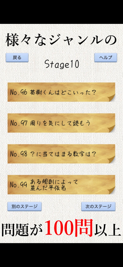 脳を若返らせてみませんか? 硬くなった脳を柔らかくします。 400問の問題を解いて脳を若返らせよう! < 遊び方 > Stageごとに用意された10問の問題をすべて解きましょう。 「次のステージ」を押して、並べ替え問題にチャレンジしましょう。 見事並べ替えに正解すると、次のステージに進めます。 全問正解目指して頑張りましょう! 1.問題は合計300問以上!! ステージを進むごとに問題が難しくなっていきます。 2.問題に見事正解すると「キーワード」と「ポイント」が受け取れます。 ポイントはヒントを解放させるときに使い、キーワードは次のスージに進むために必要です。 3.問題がわからないときはヒントを積極的に活用しましょう。 4.ヒントを見てもわからないときはシェアして、解ける人を探してみましょう。 5.それでもわからないときには「諦める」ボタンで答えを表示させましょう。 6.前の問題が解きたいときは「別のステージ」で前の場所に戻れます。 ※現在のステージをクリアしていないと、先のステージは選択できません。 ※機種によっては回答が認識されない場合があります。 申し訳ありませんが「漢字」「ひらがな」「カタカナ」等お試しください。
