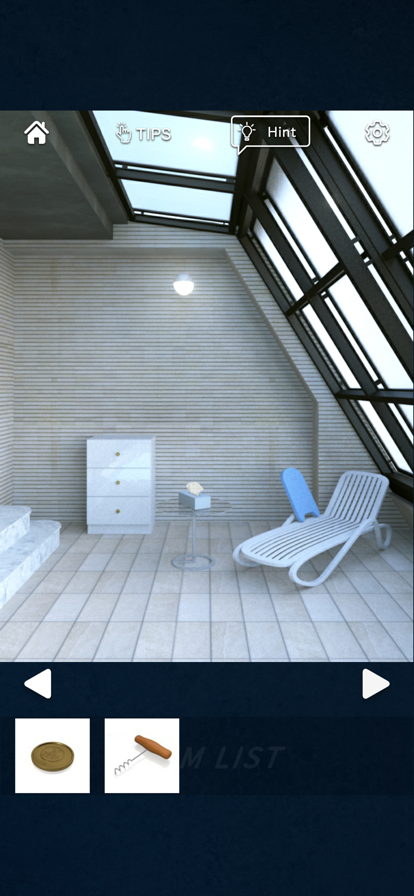 目が覚めるとあなたは白い部屋にいた アイテムを探し、組み合わせ、謎を解いて脱出せよ 【遊び方】 ・気になるところや怪しいところをタップで調べましょう ・アイテムを入手できたり、場所が拡大されます ・上のアイテム欄をタップするとアイテムを拡大できます ・アイテム同士を組み合わせるときは、最初のアイテムを選択し、もう一つのアイテムを選択します ・ヒントは右上の電球のアイコンをタップ ・左上のメニューからBGM、効果音の設定ができます ・オートセーブ機能
