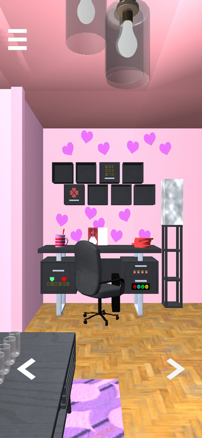 さまざまな謎や仕掛けを解いて 恋するクマさんたちとバレンタインの装飾がされた部屋から脱出しよう。 ◆特徴◆ ・難易度はやさしめなので、脱出ゲームが苦手な方でも気軽に遊ぶことができます! ・進行状況に合わせたヒントが出てくるので行き詰まる心配なし! ・進行状況はもちろん、ゲーム内の仕掛けなども自動セーブされます! ・最後まで無料で遊ぶことができます! ◆あそびかた◆ 操作方法ももちろん簡単! ・探索 タップで調べる ・移動 気になる箇所をタップまたは画面下の矢印をタップ ・アイテム選択 上部のアイテムアイコンをタップ ・アイテム使用 アイテムを選択した状態で、画面をタップ ・アイテムをズーム アイテムを選択した状態で、同じアイテムをもう一度選択 ・アイテム合成 アイテムをズームした状態で、別のアイテムを選択しズーム中のアイテムをタップ ・ヒント表示 画面左上のMENUボタンからヒントが見れます。 1人でアプリを制作しています。 ユーザーの皆様に楽しんで頂けるよう日々試行錯誤を重ねています。 もし気に入っていただけたら他のアプリも是非遊んでみてください!