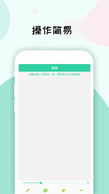 一款简洁好用的画板,不管是任何年龄阶段的人,打开后就会使用。只需要一个手指就可以绘制各种效果的艺术作品。 特色功能 1、数十种高仿真画笔工具,仿佛在纸上用着画笔作画一样,让你体验各种风格的艺术创作。 2、实时保存,我们深知用户创作灵感的不易,我们会帮用户实时保存每一笔操作。 3、几十种最常用的颜色板供用户选择使用。 4、撤销、恢复功能超过100个步骤,发挥的空间更加自如; 5、画笔大小的调节,可以根据需要放小缩小画笔,以及页面大小。 6、保存分享,可到本地,支持导出PDF、发送邮件、分享给好友。