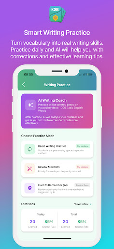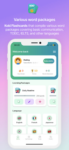 Koki(Anki)单词卡 - 智能词汇学习,采用间隔重复系统 (SRS)<br><br>Koki 单词卡是一款多语言词汇学习应用,它运用 Anki 式的间隔重复系统 (SRS),帮助您更快地记忆、更持久地保持词汇量,并更有效地学习。除了英语,Koki 还支持日语、韩语、中文、西班牙语等多种语言,完美适用于各类学习者。<br><br>主要功能<br><br>丰富的词汇卡组:<br><br>英语沟通、托业、雅思<br><br>日语(N5-N2)、韩语(TOPIK)、中文(HSK)<br><br>以及许多其他热门语言<br><br>间隔重复 (SRS) - 专注于您容易遗忘的内容<br><br>智能算法会自动优先学习您难以掌握的卡片,并优化您的复习计划,以实现长期记忆。<br><br>通过图片、示例和音频学习<br><br>结合视觉和语境,提升记忆力:<br><br>- 生动的图片<br><br>- 高品质的音频<br><br>- 清晰的例句<br><br>- 易于理解 - 易于记忆 - 持久有效<br><br>创建您的专属个性化卡组<br><br>秒速创建自定义卡片:<br><br>* 添加单词、释义、图片、音频和示例<br><br>* 根据您的学习风格进行个性化定制<br><br>* 让您的知识井然有序<br><br>* 自动生成词汇发音<br><br>从基础到高级 - 高效学习<br><br>从入门到高级的标准化词汇集,助您快速稳步提升。<br><br>节省时间 - 更高效地学习<br><br>与传统学习方法相比,SRS(间隔重复系统)可缩短学习时间,同时显著提高记忆力。<br><br>完全个性化的学习<br><br>应用程序会根据您的学习进度和记忆表现自动调整学习计划。<br><br>随时随地学习<br><br>即使没有网络连接也能学习。您的学习数据会在所有设备间自动同步。<br><br>Koki 单词卡——快速、智能、多语言词汇学习解决方案<br><br>无论您是在准备 TOEIC 考试、提升日语水平、复习 HSK,还是开始学习一门全新的语言,Koki 单词卡都能帮助您在学习的每一步都建立牢固持久的记忆。<br><br>使用条款:https://anki.edu.vn/en/terms-of-service<br><br>隐私政策:https://anki.edu.vn/en/privacy