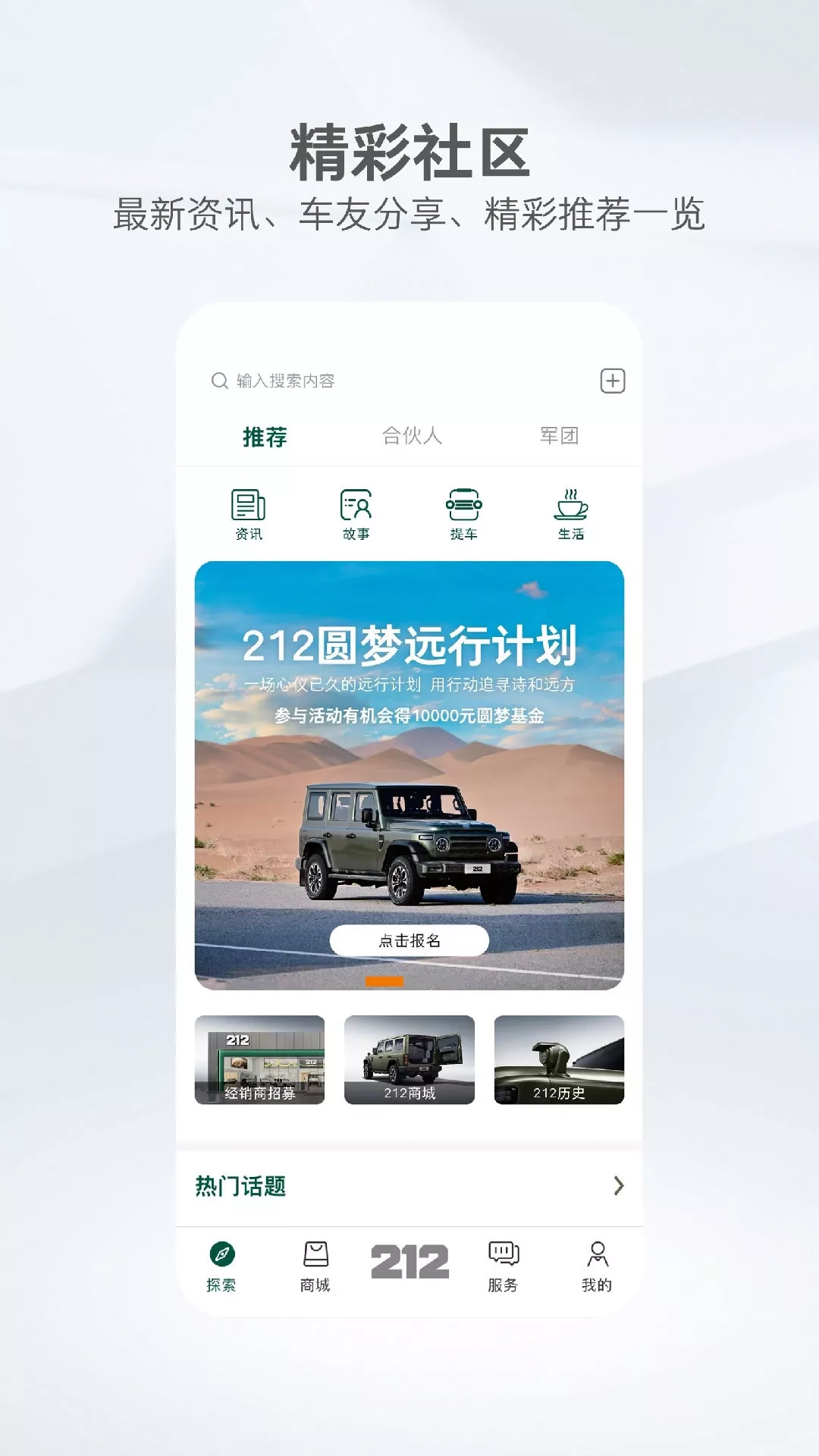 212越野车APP是为越野爱好者提供专业越野资源和互动的平台,我们致力于服务追求自由、探索和热爱的用户,在这里您将获得驾驶/改装/养护等知识,畅享智能服务,丰富社群生活,结识志同道合的伙伴,和更精彩的生活体验。
