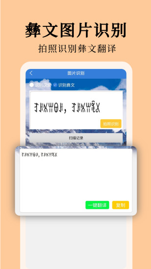 《彝文翻译通》支持彝汉智能翻译和彝文背单词学习两大功能,专注于贵州凉山彝族文化学习和彝语翻译,促进彝族文化交流和彝区人民互动,是一款深受用户喜欢的掌上凉山彝文输入法翻译器。 • 彝汉翻译 中文翻译彝文、彝文翻译中文,汉彝互译,彝汉互译;翻译结果一键复制、收藏、生成图片保存和分享。 • 语音翻译 面对面对着说话,实时语音识别翻译,说彝语转换中文,说汉语转换彝文,发音不标准也能实现同声传译和对话翻译。 • 拍照翻译 上传图片OCR识别提取彝文文字,或者拍照扫一扫文字,即可在线翻译彝文。 • 人工翻译 专业彝文翻译老师,提供一对一高质量彝汉翻译服务,翻译准确度高,错误少,过程严谨,内容保密。 • 彝语学习 主题词汇,日常会话,彝语常用词汇学习,真人发音专业教学,支持发音跟读彝语,智能评分纠音,帮助你轻松掌握彝族语言。 • 背单词 采用遗忘曲线科学学习模式,今天学习明天复习,强化记忆,收录了1000+彝语基础词汇。 • 每日一言 彝族日历显示模式,每日更新彝族传统文化、成语句子、谚语俗语,拓展学习彝文知识。 彝文翻译通采用先进机器翻译引擎、语音合成、语音识别、图片识别等技术,通