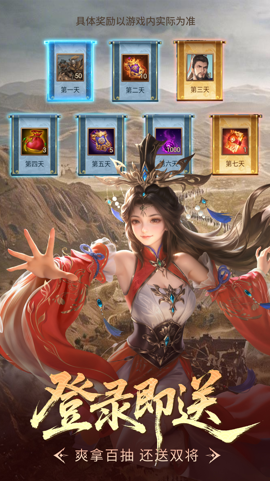 全新放置类策略卡牌后宫美女养成游戏,融合了多种可玩性元素!<br>想要了解那段金戈铁马,三雄割据的历史么?想要圆一个在战场上挥斥方遒的主公梦么?想要体验CRPG冒险的刺激么?在这里有几乎所有你想要的。模拟真实的都城建造,搭建出一座功能齐全的城池。寻踪觅宝带你探寻荒野寻找那上古失落的神器,CRPG的独有体现增加了紧张刺激感。还可邂逅邀约美人,红尘一笑,独醉逍遥,快来成为主公体验这可玩性爆棚的三国手游吧!<br>游戏介绍<br>【随机寻访,静候佳缘】<br>佳人再侧,夫复何求。寻访偶遇女神,一对一的女神约会,在线互动,享受甜蜜生活,游船出游,领略河山的壮美。<br>【建造都城,模拟经营】<br>没有什么比拥有一座城池跟加令人激动了,城内包含了一套完整的运作体系,从衣食住行,到学思祀礼,应有尽有互相依存。更有将领加成,让游戏更加简单快乐。<br>【寻宝冒险,惊险刺激】<br>完美继承了CRPG的精髓,地图迷雾的存在让游戏变得即有惊喜又有惊险,人物的任务对话,打造了游戏的代入感,然你感受到自己就是一个在荒野冒险的侠士。<br>【挂机放置,休闲经典】<br>无需操作的战斗放置玩法,在空闲时间拿起来稍微放松一下,即可获得上古神器,也可获得传奇武将!离线时仍然能获得战斗经验,解放被工作掏空的大脑和双手。<br>【全新地图,一统中原】<br>整体式的地图,可以知道在哪发生过战斗,随着战斗的推进,地图也在移动,完整而又沉浸的体验那段宏伟的历史。