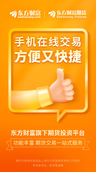 东方财富期货是东方财富(股票代码:300059)旗下的持牌期货公司,是中金所、上期所、大商所、郑商所、上期能源、广期所的结算会员。 【产品简介】 东方财富期货APP是提供期货账户开立、交易、行情、资讯、社区于一体的一站式投资服务平台,覆盖国内全部期货品种,是安全可靠的交易软件。 期货投资就选东方财富期货,下载东方财富期货APP,开启期货投资之路! 【特色功能】 ●期货开户——手机APP极速开户,开户无需费用,正规专业。 ●期货交易——手机在线交易,支持极速交易、智能条件单等,方便快捷。 ●期货行情——国内期货实时行情,技术指标丰富一键切换,覆盖国内全部期货品种。 ●期货资讯——整合东方财富网强大的信息流,行情资讯实时推送,助您抢占投资先机。 ●期货吧——人气期货社区,期市大家谈,讨论基本面动向,交流做单心得。 ●模拟交易——专享模拟期货体验金,熟悉期货交易,零成本检验投资策略。 【联系我们】 客户服务热线:400-980-1818 市场有风险,投资需谨慎。