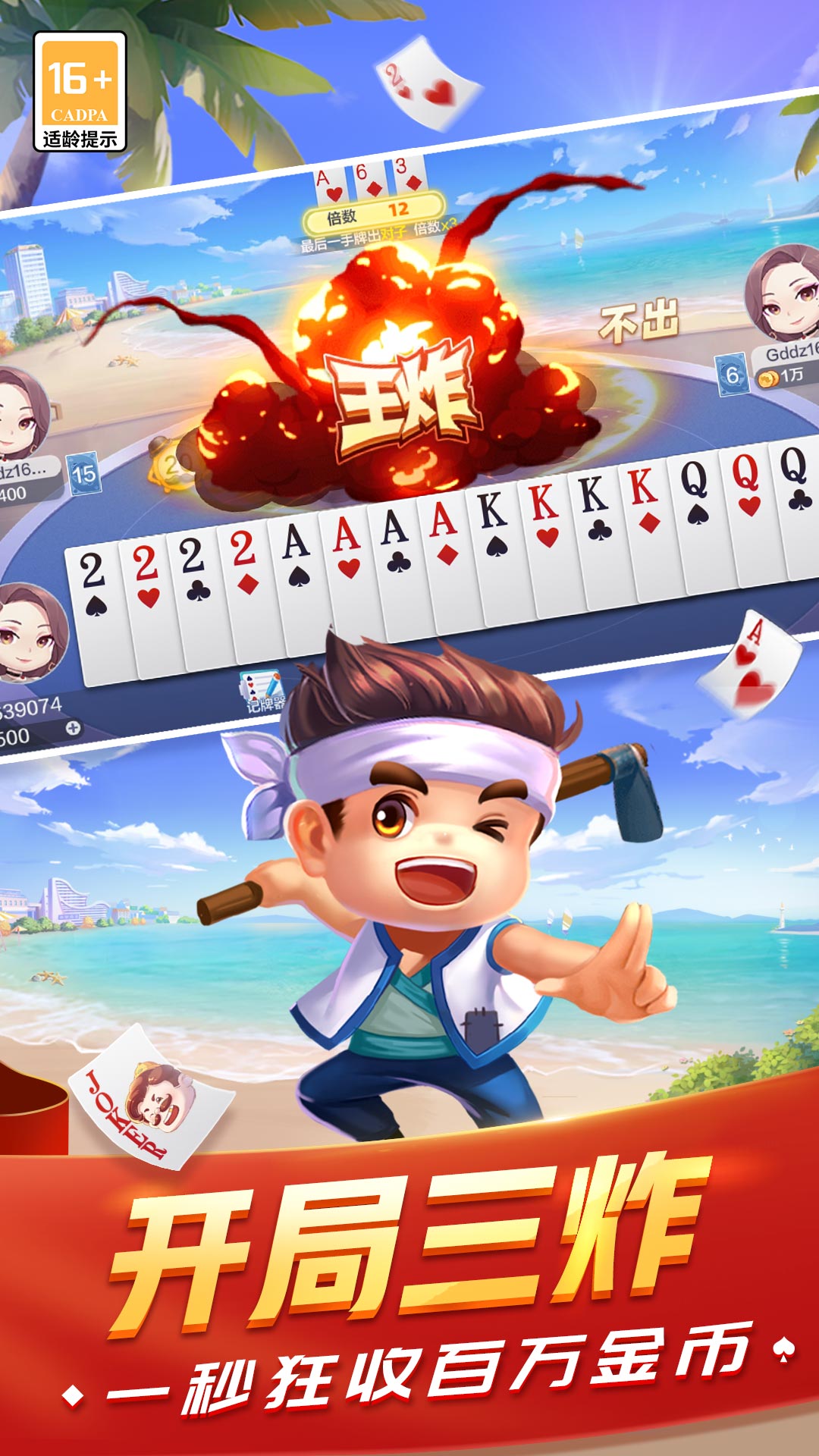 全国牌友邀你实时对战,赢豪礼!速爽解压,放肆嗨玩!欢喜庄园,种啥都赚,轻松暴富!保卫家园合成塔防新玩法,激战升级火力全开!超多活动,限时开启,玩法任选!珍宝奇遇活动来袭,阿九带你探宝领豆!解锁典藏牌桌,酷炫场景,震撼动态! 多种玩法,风靡全网,等你来斗! ——主播爆款,创新玩法任选!—— 【克隆炸炸炸】网红人气爆款!连胡带炸爽不停! 【连炸斗地主】满屏炸弹,轻松破亿,爽快解压! 【王牌510K】一把赢千亿,双地主加倍暴击! 【超级掼蛋】起手好牌,一键理顺,开局翻倍连炸! ——限时活动,好玩不重样!—— 惊喜随机掉落,挂机修仙、热血战斗、休闲钓鱼不定时开启! 【守护藤屋】BOSS来袭,爆裂对抗!瞄准弱点,一击破亿! 【桃源小仙】挂机升级,带宠修仙,躺平暴赚亿万豆! 【钓鱼挑战】欢乐钓鱼,速成大师!丝滑操作,大货秒上钩! 【龙宫探宝】探寻珍宝,好运连连,盆满钵满,解锁炫酷装扮! 【欢喜娃娃机】轻松趣味抓娃娃,一击必中,领限定奖励! 【悟空转盘】新增肉鸽元素,援兵系统升级!把把未知爽局,战爆BOSS更刺激! ——百玩不厌!纯正经典斗地主!—— 【不洗牌】规则简单0门槛,练牌技,练手感! 【2v2】好友组队,合作双赢!拼实力,拼默契! 【巅峰赛】真人竞技,牌局博弈,高手对决秀实力! ——高品质特效,沉浸式玩牌!—— 轻国风画风,高品质场景。动态牌桌,珍宝龙宫,尊享体验! 独特角色系统,养成玩牌技能。致敬神话经典,角色悟空、哪吒皮肤,叱咤牌局!更有阿杰、乔诗语、云鹤追等知名CV加盟,沉浸式玩牌!