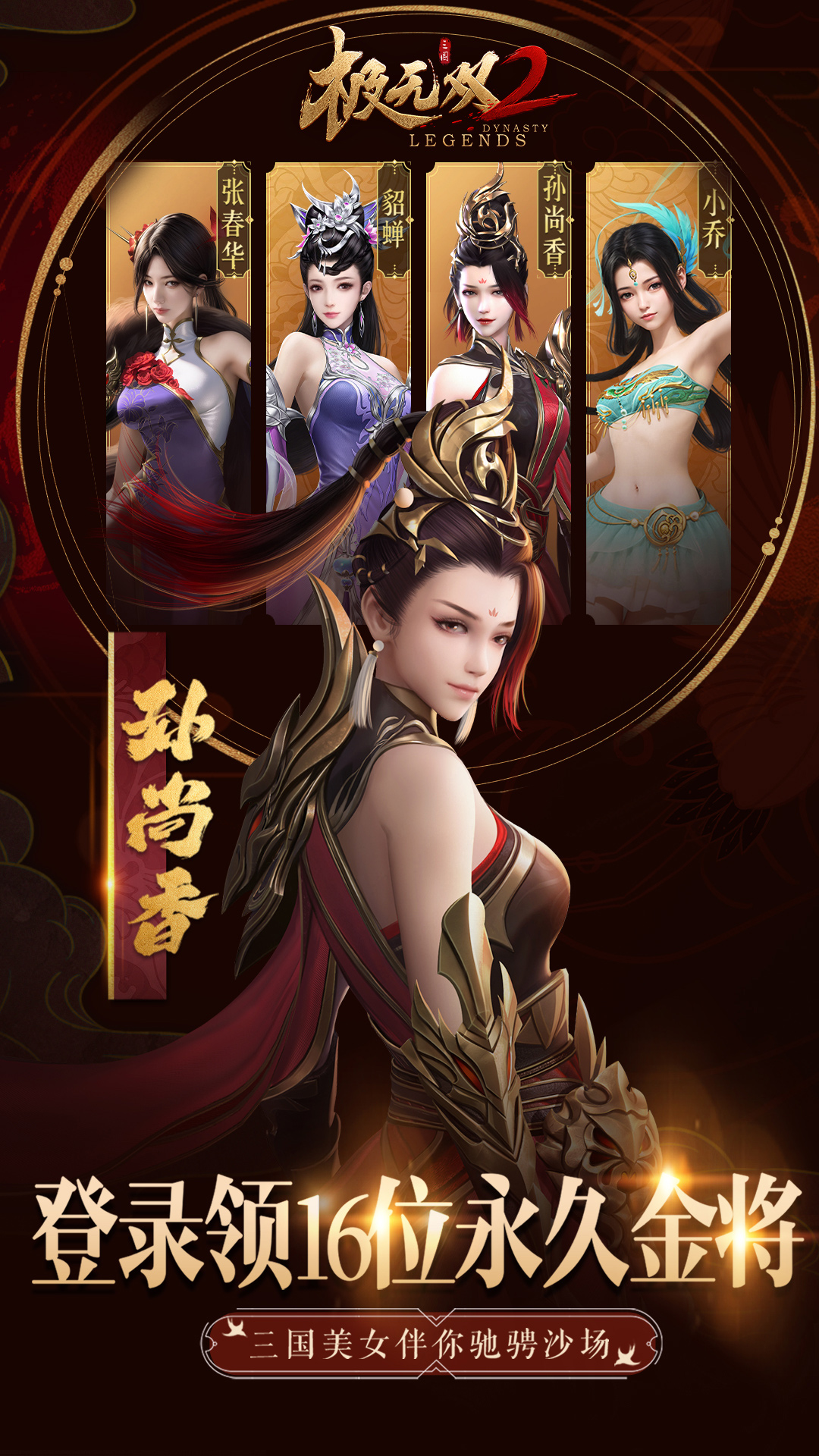 福利再加码,金将登录送!参与游戏内活动即可拿到全部金将奖励!实现金将自由!<br>你可曾试想:<br>倘若你方天画戟在握,是否能一骑当千,万夫莫挡?<br>倘若你殆陷于四面楚歌,是否能辗转腾挪,凭操作反杀对方?<br>倘若你开局周仓,是否能尽其所长,施展独有战技与吕布大战一场?<br>倘若当年华容道前你横刀立马,是否会斩杀曹操,改变三国历史走向?<br>……这一切设想,都将在《极无双2》中得到实现!<br><br>天下名将,极者无双!国韵革新无双动作手游《极无双2》在此!且跨马提抢,化身猛将,穿越四起的狼烟,重临东汉末年的乱世战场!尔等安敢与我一战?!<br><br><br>——— 游戏特色 ———<br><br>【旗舰ARPG无双割草,一骑当千万夫莫挡】<br>一腔战意燃不尽!《极无双2》零延迟技能释放,加持高帧率炫酷特效,带来流畅割草体验与迫真打击快感。华丽连击,风骚走位,预判闪避,丝血反杀……ARPG式手感,操作变幻无穷。酣畅淋漓的战局,充满挑战性的BOSS战,秀出你的操作,无双乱舞杀穿全场!更有气势恢宏攻城战,操作攻城器械,决战百人同屏!<br><br>【国韵重塑三国武将,万千名将尽入囊中】<br>天下名将极无双!三国名将齐聚《极无双2》,根据每名武将历史经典形象打造特异化技能设定,国韵风格重塑武将造型。张飞化身狂战士虎啸山林,三声喝断当阳桥;董卓张角邪道成魔,演绎王道反派;即便是华雄、文丑亦可凭借一技之鏖战关羽,真正三国无废将。三国武将阵容齐登场!文臣武将收集养成,打造你专属的三国阵营。<br><br>【三国旧梦沉浸体验,分支解锁隐藏剧情】<br>经典剧情新可能!《极无双2》带你回到那波澜壮阔,英雄辈出的东汉末年,从涿县桃园结义,到虎牢关前三英战吕布,经典三国主线剧情再演绎。实时演算过场动画,分支剧情选择,沉浸式剧情体验。独创名将幻想剧情,解锁隐藏三国世界线,华容道前操作关羽斩杀曹操,历史将会如何改写?<br> <br>【PVP公平竞技,群雄乱斗操作致胜】<br>谁说非酋没法打?《极无双2》采用差异化武将核心玩法设计,每名武将都拥有自己独特定位。控制突进,各具特色,不坐板凳不领便当,冷门英雄也能打,技巧取胜出其不意!武将阵容精心搭配,技能连携策略智取敌将。1V1、3V3竞技场战友合作无双战术制敌,不拼战力拼操作!