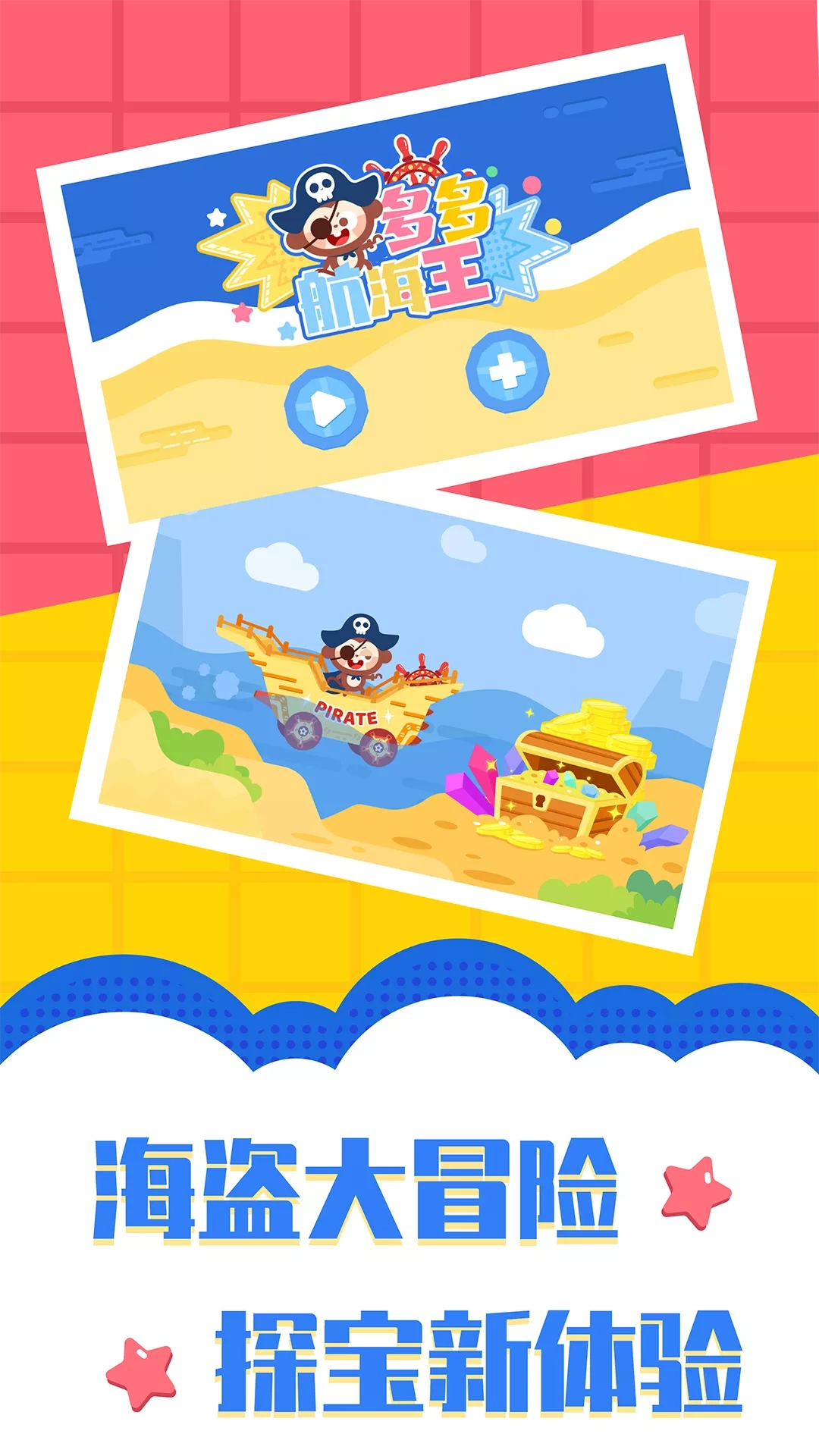 由儿歌多多团队精心打造,爸爸妈妈的好选择,小朋友都喜欢! 百万儿歌故事、绘本动画、益智启蒙、真人舞蹈、儿童游戏……更多优选内容只为给孩子一个快乐的童年。 小朋友,想不想体验当小海盗的感觉呢?想不想驾驶海盗车去探索挖掘宝藏呢? 想不想和小伙伴们比拼智力和反应速度呢?快来【多多航海王】挑战一下自己的脑力吧! 多多航海王具有以下特点: 【真实场景设计】精细的画面设计,精美的角色设计,模拟真实探险场景,惊险又刺激,有趣又益智; 【精美动画设计】专业动画团队用心打造萌趣生动的动画特效,带给宝宝超真实的游戏体验; 【有趣角色配音】专业配音团队,打造生动有趣的游戏配音; 【关卡设计趣味强】关卡设计独具特色,操作简单但并不容易哦! 好玩又益智,科学又涨知识,小朋友,快来开启航海探险寻宝之旅吧! 每一关都有不一样的挑战哦!不仅考验眼力、脑力,还很考验手速呢!一起来挑战吧! 玩法攻略: 点击已解锁的关卡进行游戏,通过不断旋转轨道上的装置完成道路铺设,并沿途获得爱心,到达终点即为成功,完成后会获得宝藏箱奖励哦!快来比比谁最先全三星通关吧! 儿歌多多,千万家庭认知启蒙的放心之选,宝妈宝爸哄娃神器,专属0至12岁家庭的育儿专家。 更推出多多救援队、多多的节日、多多恐龙车、多多医院、多多超市、多多小警察、多多美食街……等益智小游戏,让宝宝随时随地都能快快乐乐玩耍,轻轻松松学本领。让孩子的童年更加快乐!
