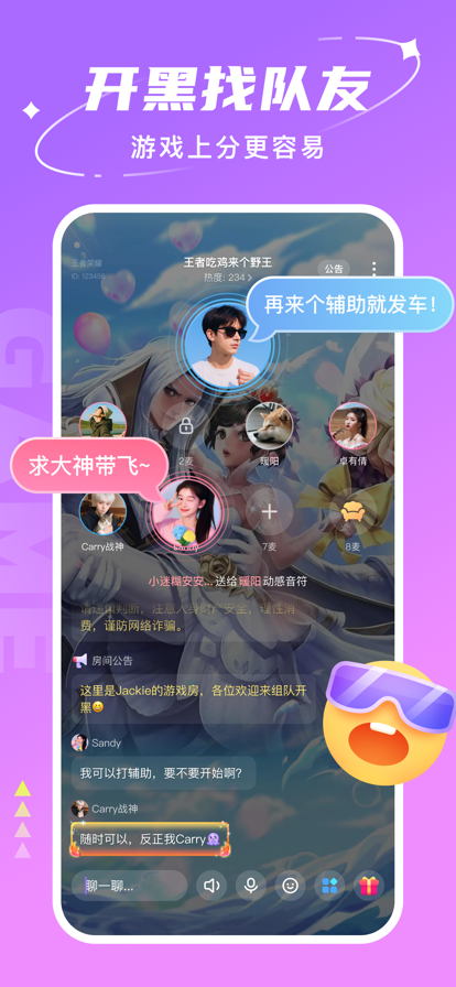 Hello语音,多玩Hello,多交朋友。 年轻人的开黑交友平台,大神、萌妹等你做队友。体验更流畅语音开黑,登录即可领取游戏福利! 语音电台直播、1对1蒙面连麦、唱歌、pia戏、情感聊天,这么多好声音,总有一款属于你! 【电竞开黑时刻】 1、大神找你开黑,靠谱车队上分。 2、用视频分享你的绝杀时刻。 3、看游戏赛事直播,为热爱打call。 【游戏欢乐时刻】 1、谁是卧底,演技派玩友在线飙戏! 2、嗨歌抢唱,歌神C位出道就是你! 【脱单恋爱时刻】 1、相亲交友,温暖治愈的甜甜恋爱。 2、挚爱CP,来一段双向奔赴的感情。 【社交轻松时刻】 1、电台直播,治愈的故事伴你入眠。 2、图片社区,拍照分享你的生活。 3、蒙面交友,匿名倾诉私密心事。 【Hello语音会员自动订阅服务说明】 订阅服务:Hello语音大会员连续包月(1个月)、Hello语音超级会员连续包月(1个月) 订阅周期:1个月 订阅价格:大会员连续包月12元/月,超级会员连续包月16元/月 用户确认购买并付款后计入iTunes账户,苹果iTunes账户会在到期前24小时内扣费,扣费成功后顺延一个订阅周期。 如需取消订阅,请打开苹果手机“设置” --> 进入“iTunes Store 与 App Store”-->点击 “Apple ID”,选择"查看Apple ID",进入"账户设置"页面,点击“订阅”,选择Hello语音,取消订阅即可。 如未在订阅结束的至少24小时前关闭,将视为您同意继续授权,此订阅将会自动续订。 Hello语音付费协议:https://s.520hello.com/ck3Xx Hello语音订阅服务协议:https://s.520hello.com/hqw3Y 隐私协议:https://s.520hello.com/qvW3b 用户协议:https://s.520hello.com/DEIYY 微信公众号:hello-6668 欢聚集团(NASDAQ:JOYY)旗下产品