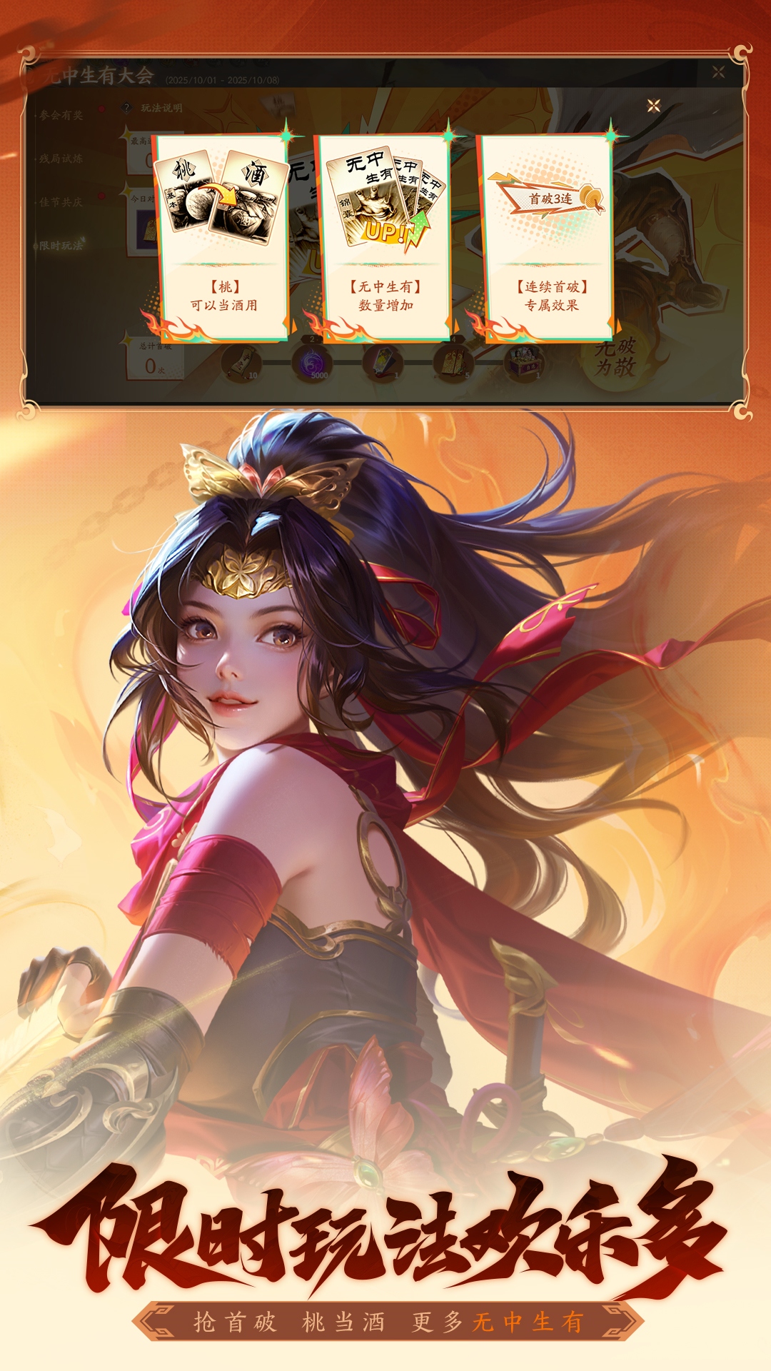 《三国杀:一将成名》是以国民经典玩法为骨,创新求变理念为魂,打造的新国风竞技卡牌游戏! 游戏不仅有四亿人熟悉的经典身份场、国战博弈、欢乐2v2等原汁原味三国杀卡牌玩法,更创新打造了全新自走棋、剧情演绎PVE、休闲斗地主、肉鸽闯关等数十种丰富玩法,竞技休闲无缝切换,随时畅玩无压力。《三国杀:一将成名》也致力于打造全民共创氛围,万千玩家共创武将设计,三国杀玩法编辑器,助力你创造心中的三国武将。 三国乱世已开,请主公执牌为剑,统帅群雄,匡扶汉室,一将成名! 【谋·黄盖领衔·全民福利】 登录领SSS级永久武将谋黄盖!新用户上线领 150 抽!注册即领五虎上将,新手七日畅享神将好礼!SSS级武将神刘备、群马超,大小乔传说皮肤,助力流畅体验!更有武将招募不重复,助主公广招天下名将! 【武将共创·参与有奖】 人人当策划,全民齐共创!设计武将实装上线,三国杀编辑器开放!我们期待在与无数玩家创意的共鸣中,打造武将技能、台词、设定甚至玩法的共创平台,共绘出三国杀的新章。参与即有奖励,共创武将免费拿! 【八人演兵·阵容运营】 原创三国杀自走棋玩法首赛季开启!多元阵营搭配,上百种棋子策略探索!自动战斗、随时开局、一人成军、无压力畅玩。打破三国历史次元壁,化身几十位主公排兵演策,公平对决,冲击赛季最强王者! 【经典玩法·多人竞技】 经典主忠反内身份博弈,国战技能搭配问鼎巅峰,还原最原汁原味的三国杀体验。手机、网页、微端多端互通,同服竞技,随时随地三国杀! 【休闲排位·随心切换】 专属PVE、斗地主、2v2……休闲/排位随时开局畅快淋漓。将灵养成,天书乱斗,烽火连天单人肉鸽等数十种趣味玩法,基于三国杀,创于三国杀,为您带来更多别样选择。 【乱世如梦·唯美国风】 删繁去奢绘事后素,全面构建东方美学。著名画师精心手绘,再塑英豪各领风流。国风场景原画设计,重绘汉末乱世山河。上线即送皮肤30抽!精美人物皮肤收入囊中,搭配牌局动态壁纸、酷炫技能特效,请君亲临三国战局之中!