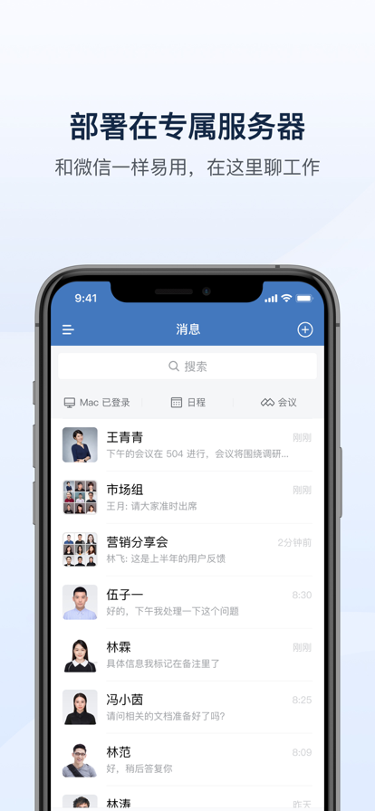 企业微信私有化是腾讯企业微信团队在原企业微信基础上,为大型企业提供的智慧办公私有化解决方案。 重点解决大型企业内部移动办公、即时沟通、远程音视频会议、一体化办公等问题,提升办公效率。 1.计算与数据服务私有部署,安全可控 【内网存储】聊天记录、通讯录等数据存储在大企业内网,安全可控 【数据加密】服务器、客户端多重加密机制,保障数据安全 【混合网络】支持内网、外网、内外网混合部署 2.熟悉的沟通体验,和同事一起高效聊工作 【和微信一样易用】与微信一致的沟通体验,简单易用 【信息沉淀】电脑与手机多平台消息实时同步,并云端保存 【高效沟通】发出的消息可以查看对方的已读未读状态,沟通工作更高效 【企业通讯录】支持批量导入员工信息并统一管理,找同事更方便 3.开放能力 【丰富的开放接口】开发者通过使用应用授权、身份验证、通讯录管理、消息推送、效率工具等丰富的接口,为企业开发和接入个性化的企业应用。 【办公与协作】开放日程、文档、微盘、会议、邮件等应用接口,帮助企业提升办公效率和管理能力。 【通讯录管理】开放通讯录管理接口能力,企业可对部门、成员、标签等通讯录信息进行查询、添加、修改、删除等操作。 4. 提供多款效率工具 【文档】继承了腾讯文档丰富的编辑能力和稳定体验,还可以邀请同事加入文档共同编辑查阅。 【会议】延续了腾讯会议高清、稳定、流畅的开会体验,并集成屏幕共享、电子白板、主持会控、会议录制及纪要等功能。 【邮件】继承了腾讯企业邮的安全绿色反垃圾能力,写信支持快速选择通讯录上的同事,并加强了与其他功能的联动。 【日程】提供了高效组织会议和管理全员日历的能力,还可以邀请同事一起参与日程。 【微盘】提供了企业可管理的文件共享空间,可与同事实时共享工作资料,方便随时查看与多人共享。 更多信息: 企业微信私有化需部署服务器后才能获取组织机构域,请在官网登记组织机构信息,我们会及时回访。
