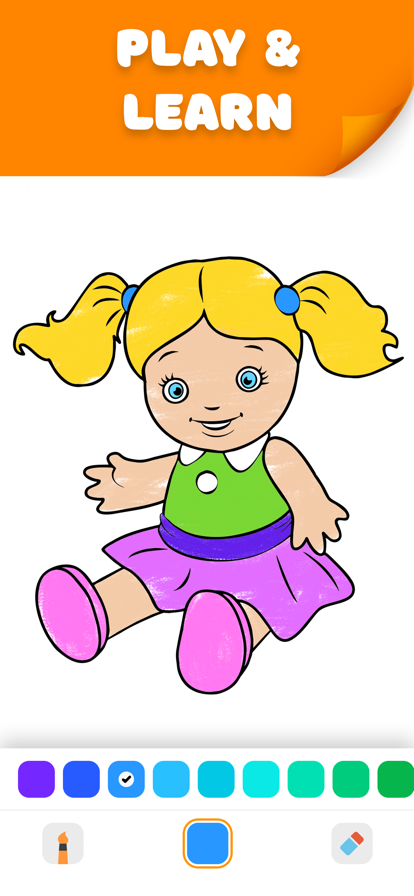 为儿童设计的创造性和教育性游戏,帮助您的孩子有效地利用电子设备。让您的孩子感觉像一个真正的艺术家!该应用包括适合幼儿的填色活动以及旨在发展精细运动技能的绘画课程。此外,该应用包含不同主题的图片,这些图片将用迷人的声音和有趣的角色娱乐您的孩子。以下是您可以期待的内容: - 11 个主题包,包含 165 页; - 适合儿童的简单填色; - 绘画课程; - 创意开发。 该应用专为学龄前儿童设计,也适合2-4岁的男孩和女孩。所有活动均由儿童教育领域的专家参与开发,包括发展精细运动技能和逻辑等教育元素。 玩得开心!