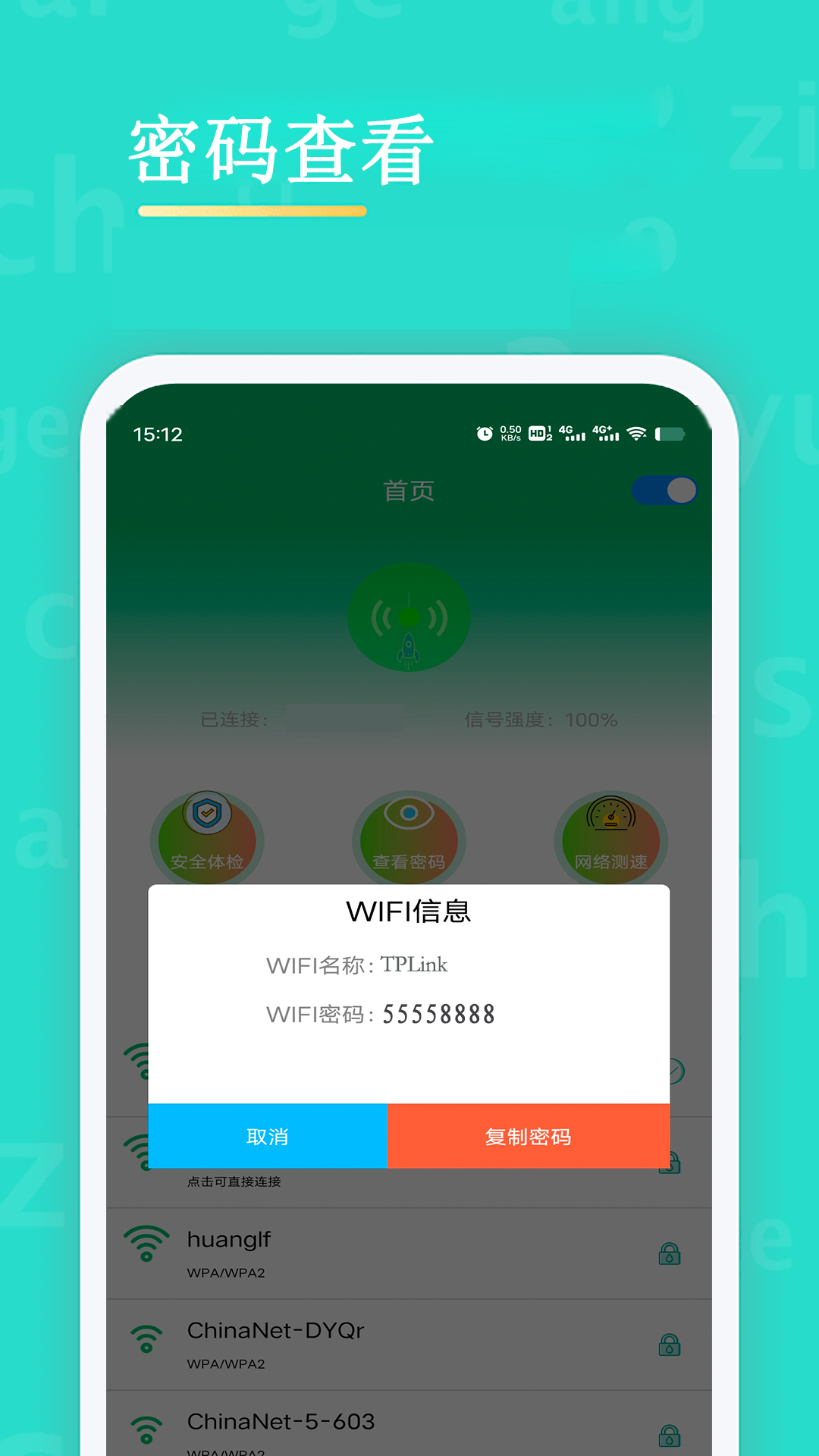 WiFi万联钥匙是您生活中的网络钥匙,可以直接直接快速的查看已经连接的热点wifi密码。密码查看、网络测速、安全检测、省电降温的APP工具。 WiFi查看密码同时具有密码查看、测速的等功能的安全上网工具。 五星功能: 1.轻松可查看当前连接的热点密码。 轻松查看设置已连接过的热点密码。 2.一键优化信号,瞬间提升信号速度.