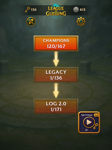 你对英雄联盟了解多少?猜猜联盟是一款简洁的粉丝自制问答游戏,你只需通过技能就能猜出英雄联盟的英雄。它快速、有趣,专为热爱技能知识的玩家打造。<br><br>游戏规则:<br>看到一项技能,猜出英雄。<br><br>卡住了?使用钥匙最多可显示 3 项其他技能。<br>答对即可获得经验值,下次用经验值兑换钥匙,解锁更有趣的线索。<br>每日奖励和可选的激励广告可帮助你积累钥匙。<br>为什么你会喜欢它<br><br>专为英雄联盟玩家打造:专注于英雄及其技能——没有多余的内容。<br>快速回合:非常适合在排队之间的短时间游戏。<br>公平的进度:玩游戏是为了获得经验值,并在需要帮助时将其兑换成钥匙。<br>简洁精致:零废话——纯粹的英雄猜谜乐趣。<br>备注:单人模式专注于通过技能识别英雄。<br>新玩家可立即加入,无需登录。<br><br>粉丝内容免责声明<br>《猜猜联盟》是由粉丝制作的项目,Riot Games 不认可或与其有任何关联。<br>英雄联盟和 Riot Games 是 Riot Games, Inc. 的商标或注册商标。<br>© Riot Games, Inc. 保留所有权利。