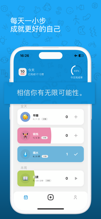 Today是您的免费个人习惯跟踪器,帮助您管理每日日程,养成改变一生的好习惯。利用Today依据经过行为科学验证的方法做出的独特的视觉化与奖励式设计,抛弃坏习惯,坚持好习惯。 Today的独到之处何在? 简单直观 Today的界面干净简洁,旨在帮助您追踪您的多种习惯和活动,只需简单几个手势,初次使用便能找对感觉。 照片封面激发动力 为每项习惯选择一张全屏照片作为封面,激发您的动力,从视觉上刺激您保持习惯。可从我们不断扩大的图片库中选择,也可任选您自己的某一张照片。 自定义卡片 Today是市面上第一款让您能为每种习惯创建完全自定义仪表板的习惯追踪应用,只需将以下提供不同功能的卡片加以组合:Apple健康图表,自定义图表,自定义计数器,待办事项清单,日记,打卡日历,照片库,以及更多。任选最适合您习惯的卡片,按照您希望的追踪方式加以组合。 精辟的统计数据与趋势 无法测量也可以管理。在您的Today个人资料中清晰纵览所有习惯和活动的打卡与坚持情况。找出您的弱点,帮助您作出调整,优化方案,实现最大成功。 赢取徽章和奖项 养成新习惯,抛弃坏习惯,不是只在每天打个勾就够。Today会在您有所进步时,为您颁发徽章,帮助您更加留心自己的进度,推动您在正确的方向不断前进。 自动备份安心无忧 您的数据十分珍贵。使用Today的自动备份功能,将您的全部数据保存到您的个人iCloud空间或Dropbox文件夹内,保障安全,并在需要时方便恢复。 隐私 您的隐私很重要。使用Today的Touch ID锁或Face ID锁,保护您的所有习惯数据。对于不支持Touch ID或Face ID的所有设备,我们则启用了4位数字的密码功能。 Apple Watch版应用 Apple Watch版Today提供快速清晰的本日打卡情况概览,并可通过简单手势完成打卡。与Apple Watch的集成将让您坚持行动,让您知道自己完成的每一个小目标。 Rich Notifications和Today Widget 根据您的需要,为每项习惯设置任意数量的通知。使用Rich Notifications,每条通知均附带当前进度的美观图示,并能让您无需离开此应用便可打卡。Today Widget则能让您迅速查看和完成任务。 以及更多 访问我们的网站,了解有关Today特性的完整信息: htts://neybox.com/today/ 下载Today,从今天开始改变您的人生! 高级版本特性: - 自定义照片封面,使用高级版的所有封面图库 - 每项习惯可使用无限张卡片 - 使用高级版卡片 - 追踪无限项习惯 - 使用iCloud空间或Dropbox备份和恢复数据 - 使用Face ID、Touch ID或4位数字密码控制对您个人习惯数据的访问。 除非在当前订阅期结束前至少 24 小时关闭自动续订,否则您的订阅将自动续订。系统将在当前订阅期结束前 24 小时内向您的帐户收取续订费用。取消订阅后,在当前订阅期结束前,您的订阅仍然有效。自动续订功能会被禁用,但当前订阅不会退款。如果提供免费试用,在您购买订阅后,免费试用期的任何未使用部分将作废。 Terms and privacy policy: https://neybox.com/today-habit-tracker/today-privacy-policy-cn
