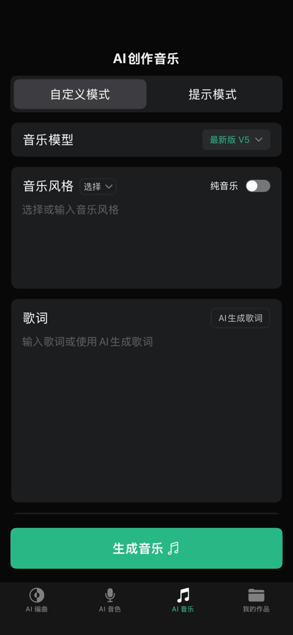 想做音乐却不懂乐器?脑中有旋律却无法记录? Vemus未音 —— 你的第一款口袋 AI 音乐工作室,也是最懂你的音乐社区!这里没有门槛,只有无限的创意。无论你是想写一首表白情歌,还是搞怪神曲,亦或是对经典进行赛博改编,AI 都能帮你一键实现。 【核心亮点】 零门槛 AI 创作:只需灵感,即刻成曲 输入一段文字描述、心情或几个关键词,强大的 AI 引擎将在几秒内为你生成专业级的词曲与演唱。流行、摇滚、爵士、电子、国风……万千风格,随心切换。 万物皆可 Remix:赋予歌曲第二次生命 听到喜欢的歌想换个风格?使用独家 Remix 功能,将抒情变为说唱,将男声变为女声。甚至可以上传你的哼唱,让 AI 为你生成全套伴奏。 玩转音乐社区:寻找你的“世另我” 发布你的作品,收获点赞与粉丝!在社区中发现宝藏 AI 创作者,使用他人的作品进行“二创”接龙,与全球音乐爱好者一起碰撞火花。 专属作品库 生成高清音质作品,一键导出或分享至朋友圈、TikTok、小红书,让世界听到你的声音。 【适合谁玩?】 乐理小白:无需任何基础,享受创作乐趣。 短视频博主:低成本生成无版权风险的专属BGM。 音乐发烧友:探索 AI 音乐的无限边界。 创意鬼才:无论是鬼畜还是整活,这里是你的天堂。 立即下载 Vemus未音,让 AI 释放你的音乐超能力! 【应用内购买服务】 提供应用内会员购买服务,购买会员后将获得积分,有四种订购方式可供选择: 1个月会员=49元 3个月会员=147元 12个月会员=293元 1 个月(包月)续费会员=39 元 3个月(1季度)续费会员=117元 提供应用内积分购买服务,积分可用于产品内包含生成歌曲、改编歌曲、Remix歌曲、下载歌曲、发行歌曲等主要功能,有六种订购方式可供选择: 3000积分=60元 7000积分=140元 10000积分=150元 20000积分=320元 40000积分=639元 70000积分=1099元 【会员自动订阅服务说明】 1. 订阅服务:1 个月会员自动续费(1 个月)、 1季度会员自动续费(3个月) 2. 订阅价格:1 个月自动续费为 39 元/月、 1季度(3个月)自动个续费为117元/季 3. 付款:用户确认购买并付款后计入iTunes账户 4. 续订:每个计费周期到期前24小时内,将自动在iTunes账号扣费,并延长对应订阅服务的会员时长 5. 取消订阅:请手动打开iOS的“设置”->进入 “iTunes Store 与 App Store”->点击 “Apple ID”->选择“查看 Apple ID”->进入“账户设置”->点击“订阅”,选择Vemus未音取消订阅即可。如未在订阅期结束的至少24小时前关闭订阅,此订阅将会自动续订。 会员服务协议: https://activity.kugou.com/privacy/v-013ffd5e/index.html 自动续费协议: https://activity.kugou.com/privacy/v-fabeec9f/index.html 隐私协议:https://activity.kugou.com/privacy/v-3c0bb0bc/index.html
