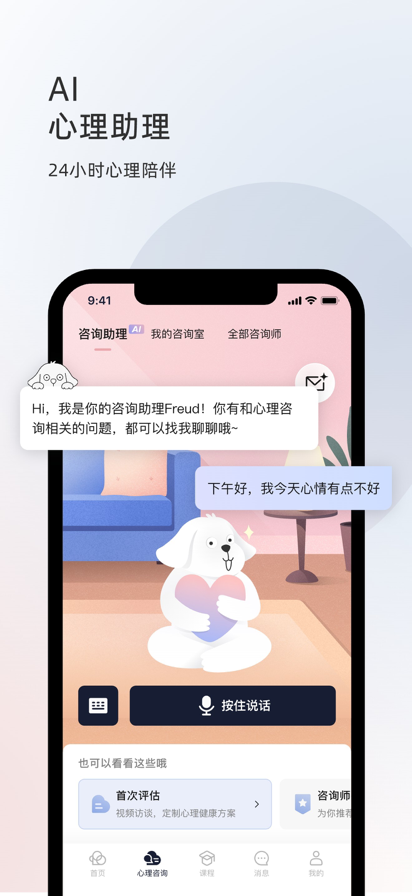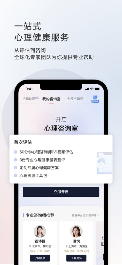 壹心理,15年专业心理咨询品牌,国内专业心理健康服务平台。 提供大众心理服务(心理咨询、即时倾诉、心理测评)、心理职业培训、心理体检、组织(学校)心理服务等在内的多形态、立体化综合性心理服务。 壹心理是一个坚持长期价值的团队,创业15年,专注于心理健康的全民普及,为中国大众的内心烦恼提供可靠解决方案,让专业心理服务可及、可信、可持续。目前壹心理用户覆盖147个国家,5300万用户在壹心理获得心理学帮助。壹心理团队一直在打磨可以放心推荐给朋友和家人的心理服务~ 在壹心理APP咨询,我们做到: 【专业】 每一个壹心理入驻心理咨询师都通过5层严格筛选并通过行业专家团队的审核,入驻筛选通过率仅2%。咨询师70%以上拥有硕博学历,提供中英法日韩等多语种咨询服务。 【可靠】 壹心理作为国家心理测评服务标准起草单位、中国心理服务机构联盟理事单位,凭借15年的专业经验,已为全球137个国家和地区的超过4000万华人与留学生提供了心理服务。 【安心】 壹心理采用发明专利技术(专利号:ZL2021 1 0437240.8),通过“信封加密”方法,全程保障咨询隐私不泄露,让用户可以放心说出自己心底的故事。 【全面】 壹心理心理咨询覆盖300多个咨询细分方向,为用户提供个人成长、婚姻情感、心理健康、人际关系及亲子教育等多个领域的专业心理咨询服务。 在壹心理 App,你可以: 【认识你自己】 通过趣味测评、心理书籍、冥想、免费课程等心理工具,陪伴你的成长,丰沛人生体验,传递生活的勇气和力量; 【入门心理学】 通过科普文章、互助问答、精选专栏等形式,了解心理学知识、社会热点的心理学角度分析,以及大众关心的情感、家庭、人际等话题; 【解决内心困惑】 提供专业的入驻咨询师、倾听师。通过资质审核、咨询时长和督导体验经历把关、现场面试等方式,建立了稳定并严格的审核标准。 并给大众提供了多种渠道来『了解咨询』、『体验倾诉』、『获得指导和服务』。 【成为心理咨询师】 如果你想成长为一名具有执业胜任力的心理咨询师,可以在壹心理平台报名『朝阳计划』咨询师培养项目,系统学习心理咨询的基本功和专业技能,一站式提升胜任力。 【成为助人倾听师】 如果你想成为专业的助人者,可以在壹心理平台报名『心理倾听师』培养项目,通过专业培训快速入门并实践,运用心理学技巧赋能自己和生活的各个方面。 【心理学人的互动交流】 壹心理通过『心榜』、『咨询师之家』、『问答成长社区』等,帮助普通爱好者/心理学初级人员,成为优质答主、精华答主、专栏作家……给心理从业者提供一个交流互动、互相支持的平台。 在产品使用过程中有任何问题,请联系我们: 客服微信:yixinliyhfk 客服电话:400-7889001,可根据语音提示转接 电子邮箱:qudao2@xinli001.com 无论你在哪里,无论你面对什么,请记得:世界和我爱着你!