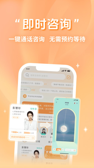 橙橙心理—专业高效的线上心理与情感咨询平台,做您贴心的知心朋友。 在生活中遇到烦心事?时常感到难过失落? 饱受焦虑失眠困扰?想找人倾诉却无处可寻? 橙橙心理,为你而来!专注心理健康以及情感领域,高效答疑解惑。 橙橙心理,一站式心理咨询平台,拥有超过5万+来自各领域的专业人士及有经验人士,其中心理咨询师2000+位。 此外,平台还拥有婚姻情感咨询师、职业规划师、同性达人、催眠师、在校名师、名校学霸等,实时在线地为用户提供咨询服务。服务领域包括心理、情感、婚姻、家庭、校园、职场、生活等。超百种行业人士等各种背景过来人,总有一个能帮你! 【无需预约】:咨询师7*24小时在线,随时随地即时交流; 【匿名保护】:无需注册即可咨询,文字/语音不留痕迹,全面保护个人隐私; 【资质认证】:平台心理咨询师通过松果平台资质认证,咨询有保障。
