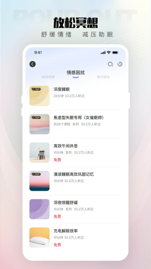 小情绪,一款真正的心理自助平台,向emo和失眠说再见: 1. 测评——专业的心理测评帮助你及时了解当前的心理状况 2. 冥想——科学方式帮助你平复情绪,长期改善专注力、改善思维模式、得到成长 3. 助眠——助眠冥想、助眠声音、助眠故事等睡眠仪式,改善失眠 4. 听书——对职场心理、自我成长、亲子教育、亲密关系四类书籍的专业解读,帮助你拓展思维,提升自我思考力、自我修复力、同理心及沟通力 5. 咨询——专业心理咨询师一对一线上咨询,为你即时疏解困惑、改善情绪,解决长期性焦虑、抑郁、社交障碍等心理问题 6. 社区——广场、精选话题、解忧馆和冥想日记,你可以在这里敞开心扉,找到相互温暖、一同成长的伙伴