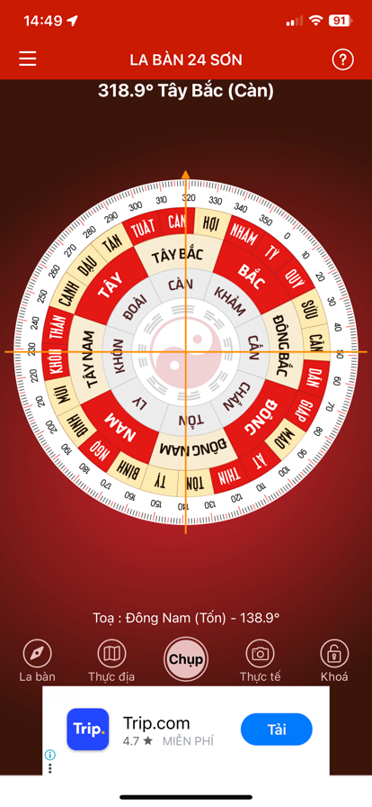 La bàn Phong thủy (La kinh – FengShui Compass) là ứng dụng MIỄN PHÍ hỗ trợ đo hướng nhà, hướng cửa, hướng bếp, hướng phòng làm việc… rất thích hợp cho các thầy, các bạn nghiên cứu phong thủy… Với kim chỉ nam chính xác, la bàn tự xoay đo hướng, tọa của vị trí người sử dụng. Sở hữu ngay ứng dụng La bàn Phong thủy với các chức năng và tiện ích nổi bật sau: - Hỗ trợ loại La bàn Bát quái tiền thiên và La bàn 24 phương vị - Tùy chọn hiển thị bằng chức năng khóa la bàn - Các chức năng Hiệu chỉnh cảm biến la bàn phù hợp với từng dòng máy. (Một số điện thoại và máy tính bảng chỉ hướng Đông => Bắc, bạn cần chọn hiệu chỉnh 90 độ). Và rất nhiều tính năng khác đang từng ngày được hoàn thiện. Ứng dụng được thiết kế để chạy trên các điện thoại di động và máy tính bảng có hỗ trợ cảm biến la bàn số. CHÚ Ý KHI SỬ DỤNG LA BÀN: Khi đo không đứng gần các máy tính, thiết bị điện, ô tô; đồng thời tháo tất cả các vật bằng kim loại trên người… để kết quả đo được chính xác. Mọi góp ý hoặc thông báo lỗi, vui lòng liên hệ với chúng tôi theo số ĐT: 04.6281.2997 hoặc gửi về hòm mail góp ý: lichngaytot@gmail.com *** Khi la bàn đứng yên hoặc sai hướng: trước khi cho nhận xét tiêu cực và 1* hãy kiểm tra xem máy của bạn có cảm biến la bàn số hay không hoặc cần hiệu chỉnh lại la bàn trong phần Cài đặt.