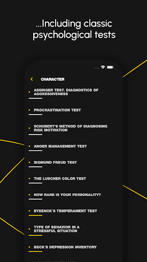 -超过40项心理测验。<br>-智力测验:智商<br>-图片测试<br>-在每个测试中对您的答案进行详细分析。<br>-完成任务并收到礼物。<br>-现代材料设计。<br>-与家人和朋友分享您的结果。<br>-进行抑郁症,人格类型,自信和了解人的能力的测试。更好地了解自己的优点和缺点。了解家庭中发生冲突的原因以及其他原因。