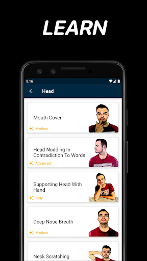你想理解人吗?这个应用程序将教您如何解读肢体语言、解码隐藏的情绪并更有效地沟通。<br>它包含 70 多个手势、100 多个视频、100 多个测试问题、50 个情境情景和 100 个感知练习。<br>全部内容均基于心理学书籍、学术论文和我们自己的研究。 <br>我们提供的不仅仅是书籍,并且希望帮助提高人们的情商。 <br><br><b>主要特点:</b><br><br><b>手势和微表情:</b><br>通过非语言交流对所有事物进行全面描述,每个描述至少包含一张示例照片以及对行为外观及其含义的描述。为了让一切更加实用,许多手势还包括:建议、有趣的事实、测谎提示和触发器。<br><br><b>逼真的照片和视频</b><br>每个动作都附有多张照片。此外,大多数手势还带有视频。这使您可以看到在不同设置和不同人身上呈现的某些手势。<br><br><b>洞察力</b><br>快速显示视频和照片以测试您能发现多少。<br><br><b>情况</b><br>具有多种可能答案的短篇故事,以测试您对上下文的心理学理解。<br><br><b>测试</b><br>8 种不同的测试,包含 100 多个问题,将帮助您测试您对肢体语言的知识和理解。<br><br><b>离线</b><br>大多数功能完全离线工作。您唯一需要访问互联网的部分是照片和视频。<br><br>无论您是性格外向还是患有自闭症谱系障碍,我们的应用程序都将帮助您在当今的心理学方面取得更好的成绩。<br>它还采用微学习风格设计,这意味着您可以随时按照自己的节奏学习。