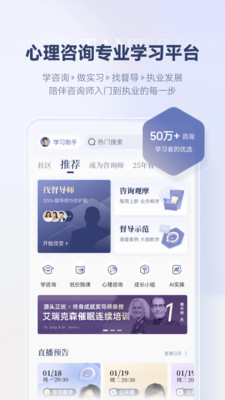 Hi,欢迎来到【咨询师之家】,超50万心理咨询师信赖的职业成长伙伴! 无论你是渴望入门的心理学爱好者,还是寻求个人成长与专业进阶的心理咨询师,这里都能为你提供从理论学习到就业发展的全方位支持,我们聚合优质师资与资源,帮你构建坚实的专业壁垒、培养强硬的个案能力! 【你能收获什么?】 #强大的师资团队 汇聚仇剑崟、张沛超等上百名国内外心理学大咖,带你深入学习CBT、精神分析、家庭治疗等流派,为您的心理咨询职业发展保驾护航; #从0到1的咨询师执业培训 联合百位心理学大师共同打磨,从“理论、实习、督导、入驻”四大版块,助力学员系统掌握心理咨询的理论知识与核心技能,培养能真正独立接待个案的心理咨询师; #专业心理督导支持 严选450余位资深督导师,提供专业的心理督导,帮你复盘咨询过程、探索咨询风格、解决执业困境,是咨询师职业生涯中不可或缺的支持; #大咖督导教学系列 连续7年更新!每年邀请张沛超等十余名资深大咖开展督导直播,你将能看到不同理论取向的大咖,如何解析真实个案、判断干预路径、平衡技术与伦理,这是提升临床实操能力的有效途径; #AI练习室 心理咨询技能实操工具,提供超500份的案例实操资源,覆盖共情、倾听、提问等咨询实战技术,你可以随时进行一场“真正的心理咨询”,帮你在与真实的来访者会面之前,打磨和提升咨询技能; #600+场大师课 累计800+小时的免费学习资源,周周直播!内容涉及焦虑抑郁等情绪管理、家庭关系、儿童青少年心理等多个维度,这是你进行免费学习、入门心理咨询领域的绝佳窗口; #咨询师专属交流社区 上千篇心理学实操干货等你阅读,万名助人者同行及大咖交流学习心得、分享执业经验。参与社区讨论和活动可赢取丰富实体奖励及积分,还可以在积分商城兑换心理学书籍、实物周边等福利,让你的成长更有价值! --- 咨询师之家,壹心理旗下专注于心理助人者成长与督导的一站式支持平台。 专注心理咨询成长,尽在咨询师之家,一站式满足您的学习、实践、交流需求。 联系我们: -微信公众号搜咨询师之家App,即可关注我们。 -或APP【我的->联系客服】联系我们