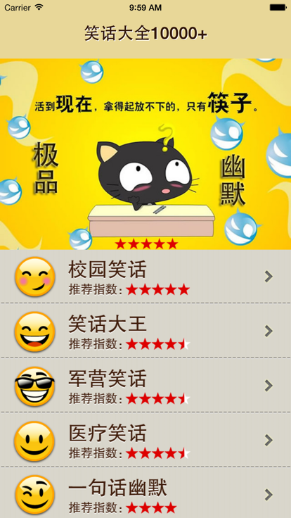 好笑的笑话,不是让你大笑两、三声就算了,而是让你的笑声,绕梁三日,不绝于耳。 笑话盒子专门收集最精彩的段子,可以带给你一辈子的快乐心情,想要滚滚而来的欢笑声、想要健康长寿,就试试它! 笑话盒子目前已搜集了10000+精彩笑话, 涵盖了极品幽默,雷人语录,校园笑话等众多类型的笑话, 还有更多笑话陆续收录中。精彩内容等你来。 -----全新界面重磅来袭,精彩不容错过! -----让你在碎片时间能充分享受每一分每一秒的快乐! -----工作闲暇必备软件,从此生活告别无聊,欢乐不断!