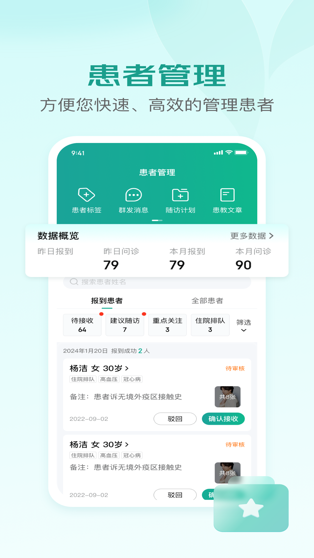 【易加医医生端】是一款致力于推动肿瘤领域医患沟通和资源匹配的软件。由肿瘤界资深专业人士研发, 面向涉及肿瘤诊治工作的外科、化疗、放疗、中西结合等专科医生。全力为医生提供患者随访、疾病教育、资讯发布等服务,助力专科医生树立和提升个人品牌。专业的在线和线下客服团队为您提供实时响应,以节约您的宝贵时间、提升工作效率为己任。【主要功能】1.【回答问题】帮助患者的同时,收治您擅长的患者2.【患者管理】高效随访出院患者,积累宝贵临床数据,提升患者满意度3.【我的预约】接受患者加号或者咨询的请求,高效利用碎片时间4.【我的发布】树立和提升个人品牌,助力科研与团队成功5.【首页滚动】最新回答问题的医生信息会在首页滚动,来让更多的患者认识您吧!用户端会鼓励用户以患者本人的身份发起提问、在线咨询、申请加号,医生可以在线看到咨询者的个体信息,以便作出更加准确专业的判断。