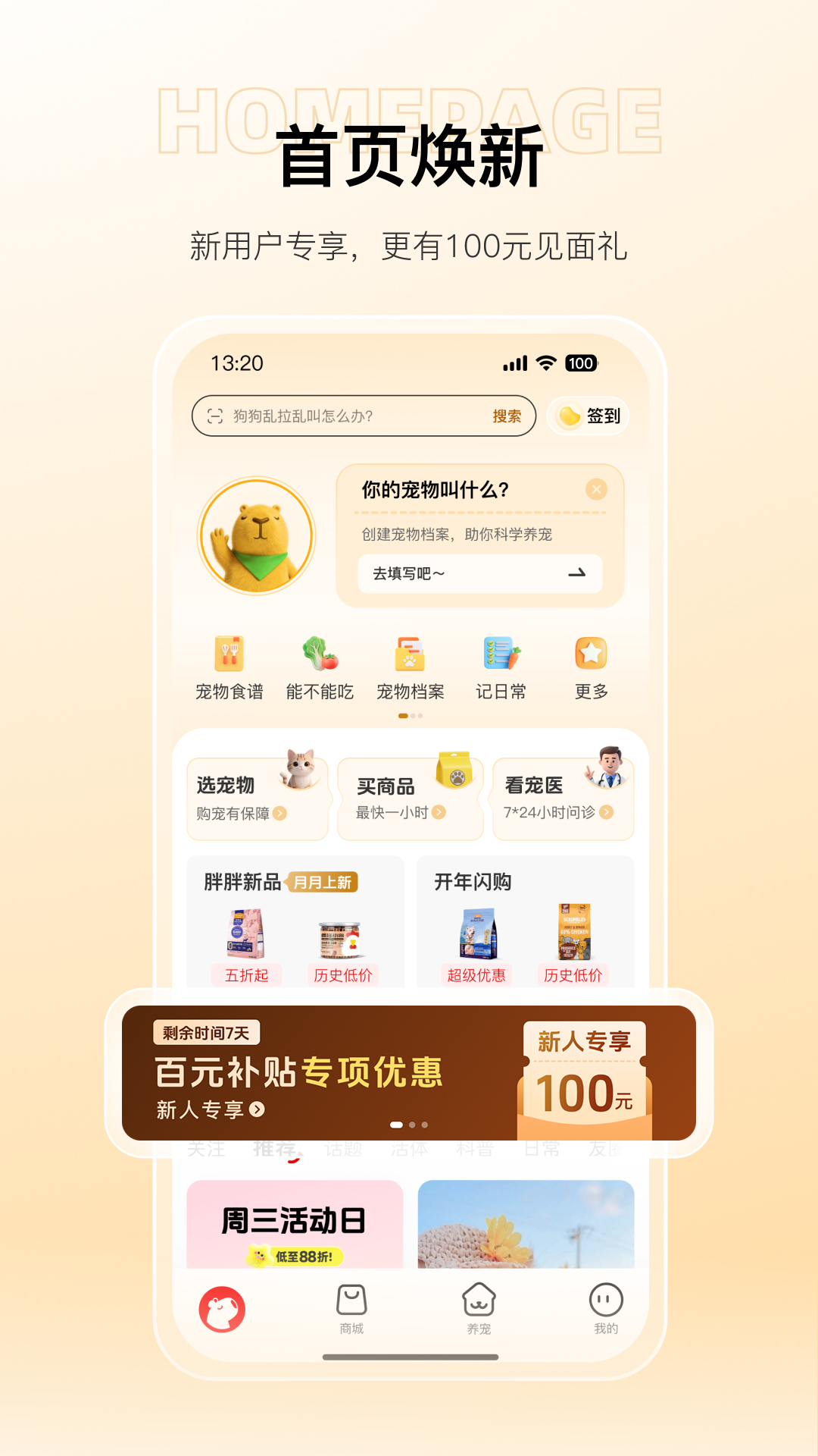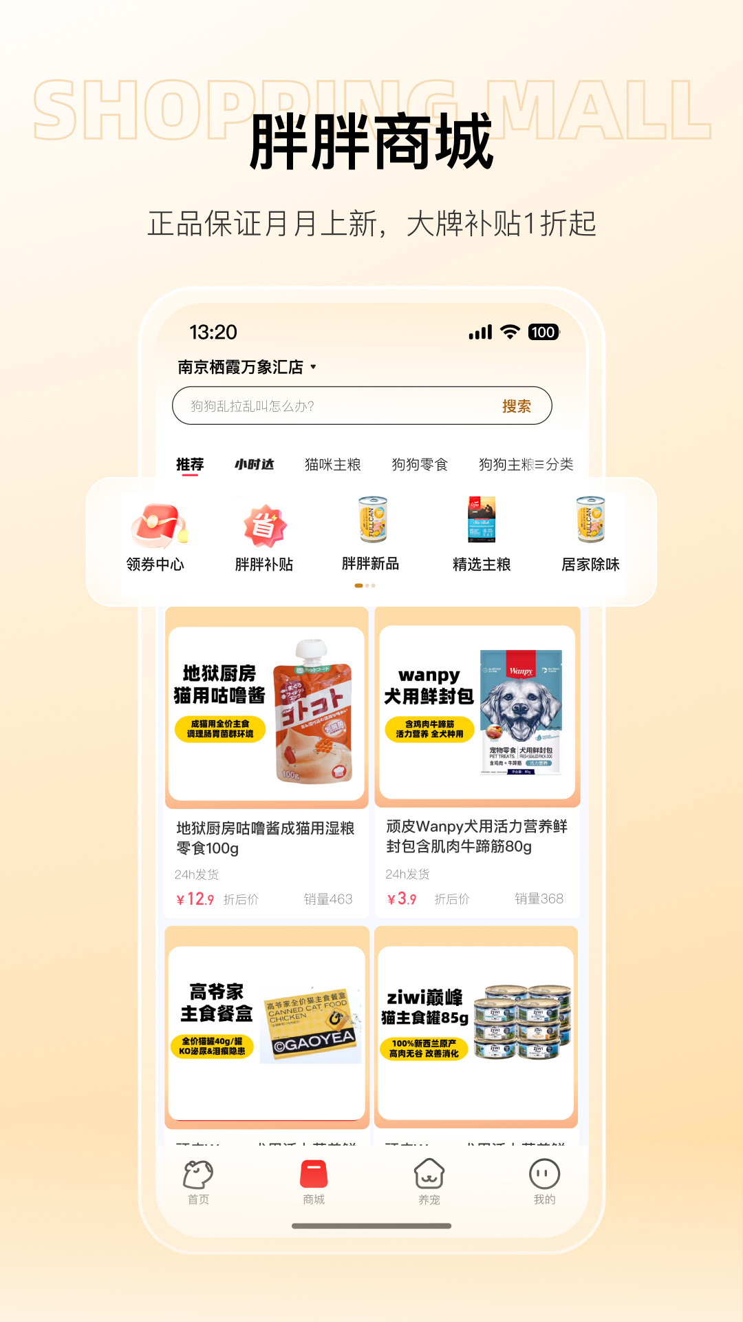 【宠胖胖】一站式智慧养宠综合服务平台。聚焦宠物生态,深耕爱宠人群,汇聚宠物内容,为亿万宠物兴趣爱好者、养宠人士、宠物服务商家搭建一个桥梁,宠胖胖将链接亿万宠物人群和宠物服务,让宠爱更省心。<br><br>1、「专业」养宠指南<br>多位宠物专家入驻,直播连线实时解答养宠难题。<br>2、一「站」式超好逛<br>集宠物食品、用品、宠物线下服务于一体,为宠友提供一站式宠物购物、服务全体验。<br>3、轻松「达」贴心护<br>一键查询你附近的门店,为萌宠提供贴心的到店服务。<br><br>使用中有任何问题或建议,请前往【我的】-【客服】-【在线客服】中告诉我们哦~