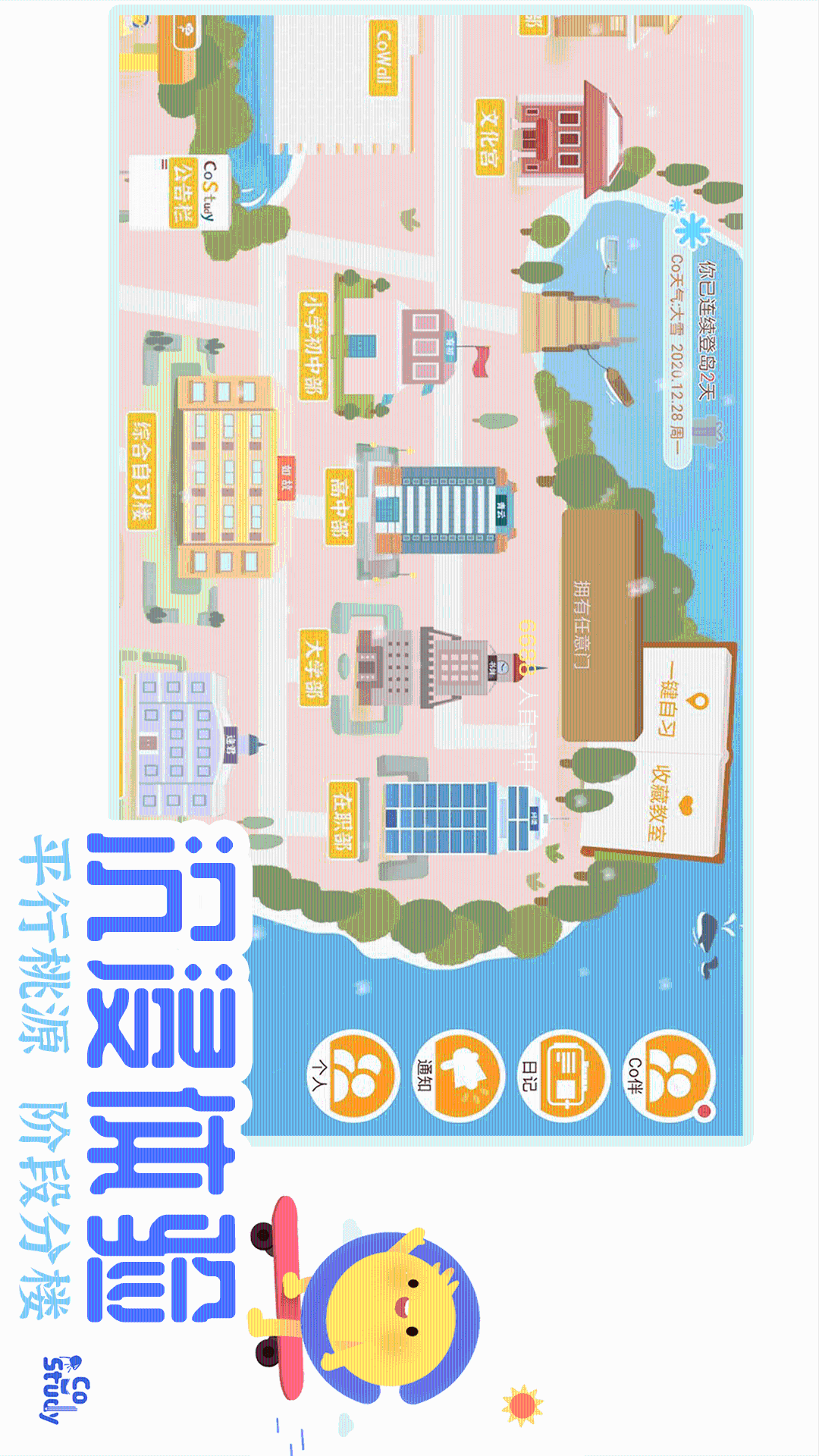 有时候会觉得一个人学习有点孤独,即便是在线下的自习室、图书馆,也会不自觉地拿起手机,没人监督也没人陪伴。更别提在家中,缺少周遭的氛围,效率继续直线下降。<br><br>CoStudy线上自习室希望打造出陪伴学习的感觉,让你回到学生时代,回到曾经的教室中。虽然你和虚拟教室里的人物理距离可能很远,但你可以感知到他就是你的同桌、前后桌,或者就与你隔了一个过道。学习的路途并不孤单,有人跟你一起前行。<br><br>你的努力,都有被看到!<br><br>#虚拟校园,阶段分楼<br>CoStudy校园还原真实的校园场景,按不同阶段设立教学楼,快来找到专属你的教学楼吧。<br><br>#志同道合,找到Co伴<br>根据目标/地区选择楼层,与志同道合的用户结成Co伴,更方便地找到组织,一起努力。<br><br>#约上好友,来做同桌<br>和好友在线上自习室成为同桌,完美解决约自习的问题。与教室内的小伙伴互相加油,学习不再枯燥。<br><br>#保持专注,有效监督<br>严格的规则控制,深度模式下专注期不能随意切出软件,小休期结束需马上回到教室继续专注,否则会浪费自习次数。<br><br>#正向激励,自律发币<br>成功完成一次专注,系统会根据专注时长发放专注工资,每次自习都有正向反馈,动力满满。<br><br>下载CoStudy,开启有趣的自律生活!<br><br>-联系我们-<br>微信公众号:CoStudy自习室