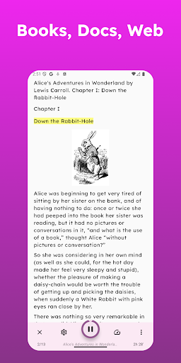 Audify 是一款强大的文字转语音(TTS)应用,能够将各类文字内容转换为自然流畅的语音。无论是网页内容(如新闻文章、网络小说),还是 PDF、ePub、TXT、DOCX、FB2、RFT 等电子书格式,Audify 都能轻松支持。<br><br>核心功能亮点<br><br>自动翻页:Audify 可自动点击网络小说中的“下一页”按钮,无需手动操作,让你轻松连续收听,摆脱频繁开关屏幕的烦恼。<br><br>自定义发音:支持用户自定义发音规则,针对特殊词汇进行校正,让朗读效果更自然贴合。<br><br>智能过滤:可自动跳过特定单词、页眉和页脚,带来更加顺畅的聆听体验。<br><br>简洁易用:界面直观友好,无论是新用户还是老用户,都能快速上手,畅享听书乐趣。<br><br>所有功能:<br>• 朗读电子书(支持 ePub、PDF、TXT)<br>• 朗读网页文字,如小说和新闻文章(HTML)<br>• 翻译网页至多种语言<br>• 将文字转换为音频文件(WAV)<br>• 自动翻页<br>• 添加至播放列表<br>• 自定义发音校正<br>• 跳过特定单词和符号<br>• 跳过页眉和页脚<br>• 双击屏幕即可从触摸位置开始朗读<br>• 多种语音选择<br>• 可调节语速<br>• 朗读时逐词高亮显示<br>• 逐句或逐段重复播放<br>• 隐藏图片<br>• 阅读模式<br>• 睡眠定时器<br>• 护眼模式(蓝光过滤)<br>• 夜间模式<br>• 可调节屏幕亮度<br>• 可调节字体大小<br>• 粗体文本显示<br>• 全屏模式<br>• 网页内搜索<br>• 通过其他应用分享网址和文件至 Audify<br>• 下载文件<br>• 从文件夹和云端导入文件<br>• 多种搜索引擎选择<br><br>常见问题及解决方案<br><br>Q:Audify 突然无法朗读了怎么办? A:您可以尝试以下方法:<br>1. 从后台关闭应用并重新打开。<br>2. 重启设备。<br><br>我们需要您的支持!<br><br>为了能够长期维护和更新 Audify,我们需要您的帮助。如果您喜欢 Audify,请:<br><br>• 给我们五星好评<br>• 撰写评论<br>• 分享给您的朋友<br>• 购买无广告版本<br>• 请开发者喝一杯咖啡<br><br>感谢您的支持!