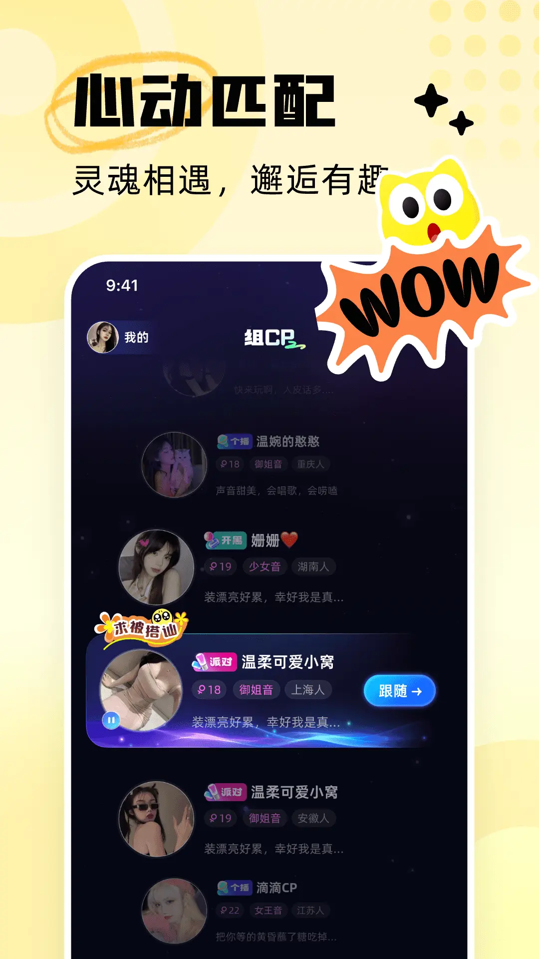 在音对,海量语音房间,15麦语音房聊到天明,遇见志同道合的玩伴; 在音对,和喜欢的ta说心里话,互赠礼物,解锁cp默契度; 在音对,契约缔结,情侣闺蜜冠名,亲密关系说秀就秀。 在音对,无论白昼黑夜,总能遇见你。 【15麦房语音派对】 K歌PIA戏,情感电台等超多类型房间等你来玩~ 点击上麦即可拥有超多玩伴,让你24小时快乐不断电。 【处CP】 交友必备,一键匹配,聊天、连麦马上开始,cp在线等你。 【 自定义聊天室】 超多麦位语音房间,满足你所有需求。 隐藏麦位,自定义名称背景打造属于你的个性空间。 【契约缔结】 亲密关系,契约缔结。 双方进房炫酷全屏特效,麦上麦下专属角标。 个人主页专属展示,亲密关系秀出来。 【趣味表情包】 难开口,想互动,丰富表情包助你打开破冰之路。 告别自闭,人人都是社交达人。 【联系我们】 使用过程中遇到任何问题,请在应用内反馈:「我的」-「意见反馈」,我们会认真倾听你的每一条建议。 微信公众号:音对语聊