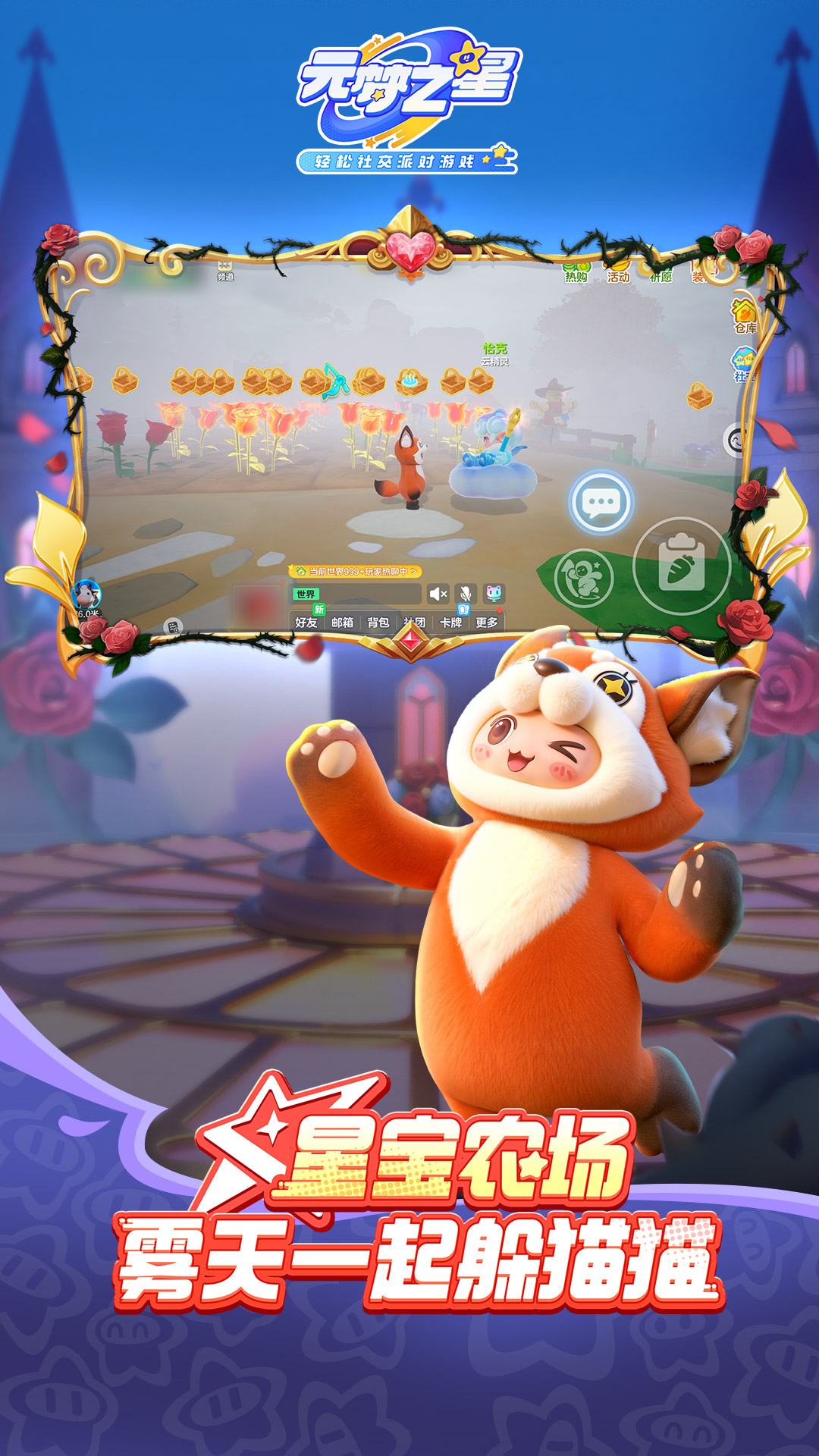 《元梦之星》是一款轻松社交派对游戏,玩家们可以化身星宝,体验纯粹的游玩乐趣,收获简单的快乐。无论i人e人,都能轻松找到属于自己的社交方式。 《元梦之星》的快乐,可以是闯关夺冠时的激动、谁是狼人推理的巧妙、峡谷3V3打赢团战的爽快;也可以是在星梦广场上开火车的闹腾、农场生活的悠闲、钓到大鱼的惊喜、星世界与星家园带来的感动……还有全世界的星朋友,陪你一起胡闹!在《元梦之星》,快乐“元”来很简单!