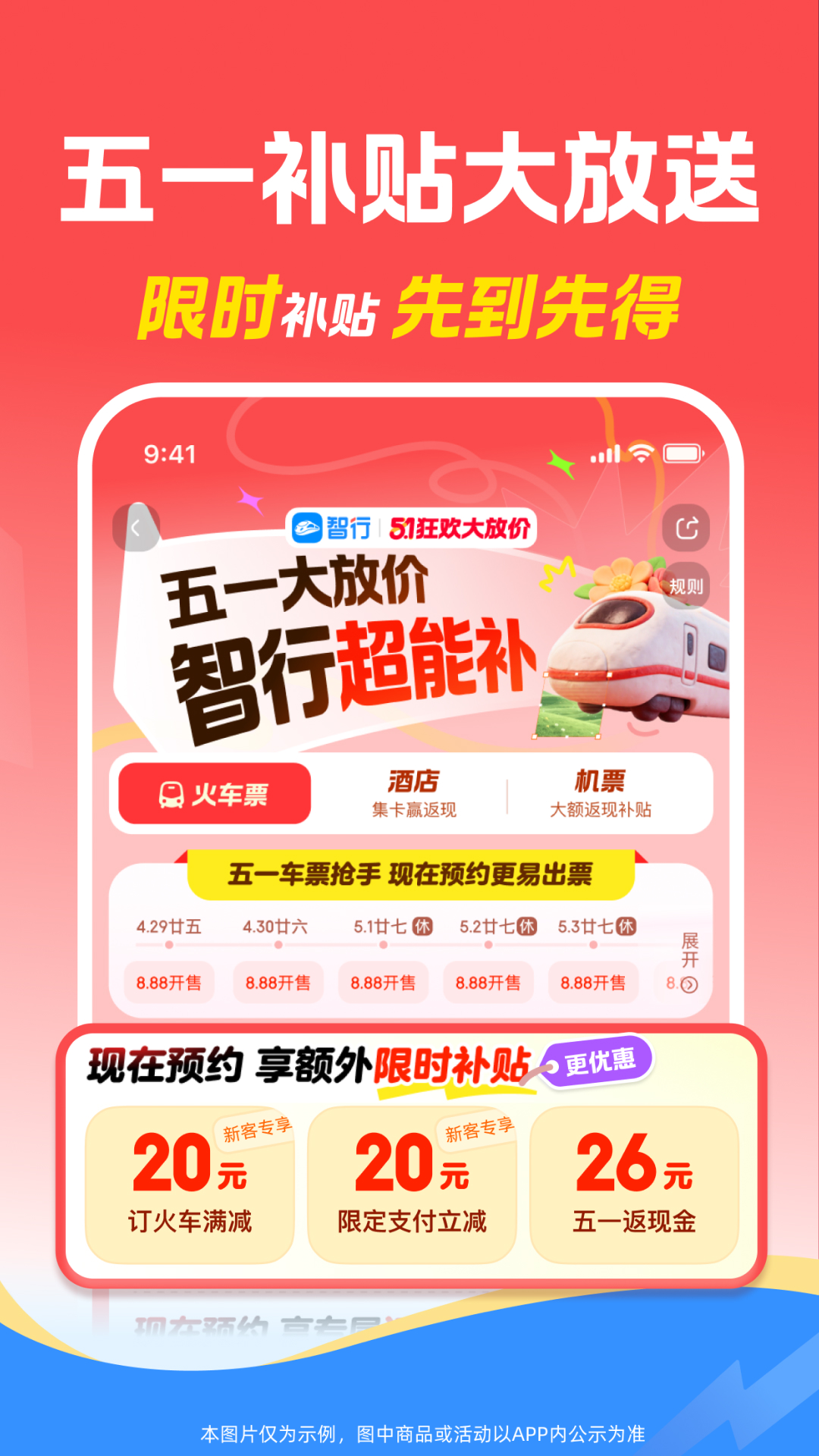 智行火车票-火车票、机票、酒店、汽车票、门票、船票一站式出行预订平台。<br>火车出行专家,提供火车开售时间、正晚点、候补改签等一站式出行服务,功能全面助您旅途顺心!<br><br>主要产品与服务:<br><br>【火车票】<br> [专业抢票] - 提前预约下单,开售时立即出票;候补有保障,还能抢余票。<br> [24小时抢] - 可全天24小时抢票,有专人监控出票,专属抢票保障,抢不到就敢赔。<br> [抢票福利] - 靠窗、下铺免费抢,学生还有全年免费抢票福利,抢不到免费升坐席。<br> [余票捡漏] - 各条线路隐藏余票一键检索,出行方案多,智能出票,出行解决率高。<br> [线上选座] - 在线选择心仪座位,下铺、靠窗随心选,座位不满意免费换。<br><br>【特价机票】<br>买机票,先来智行比价,全球低价尽在智行。<br><br>【低价酒店】<br>低价监控,有房监控,品质酒店、低价好房不错过。<br><br>【新人大礼包】<br>活动时间:即日起至2026年6月30日,智行新用户(指未在智行平台(包括智行火车票APP、智行旅行APP或小程序)下单过的用户)在APP内登录即可领取,礼包内容如下:<br> [价值130元,火车权益] -火车票立减8元,立享L4托管服务,抢不到赔100元礼包,智行助你成功买票。<br> [价值45元,机票优惠券] - 15元机票国内立减券+30元国际立减券,国内国际随心飞,更享买贵赔服务。<br> [价值380元,酒店优惠券] - 80元国内酒店满减券,搭配酒店新客权益,折上折更实惠。<br>详情以活动内容规则为准<br><br>【酒店新客大礼包】<br>活动时间:即日起至2026年12月31日,智行酒店新用户(没有酒店成交订单的用户)APP内登录即可领取,礼包包含如下内容:<br>[酒店80元优惠券] - 酒店新客首次预订可享受大额补贴,领取后15天内有效,可与黑钻会员价叠加使用。<br>[酒店体验黑钻会员,价值99元] - 酒店新客首次订房可体验黑钻会员专享价,预订酒店85折,且可与优惠券叠加使用。<br> [酒店200元满减券] - 酒店新客首次预订可享受大额补贴,领取后90天内有效,可与黑钻会员价叠加使用。<br> [其他权益]首次预订赠送600积分,至高可抵6元!部分酒店还可使用10元立减券,享受免费早餐、免费取消时段延长、延迟退房、房型升级等权益!<br>详情以活动内容规则为准