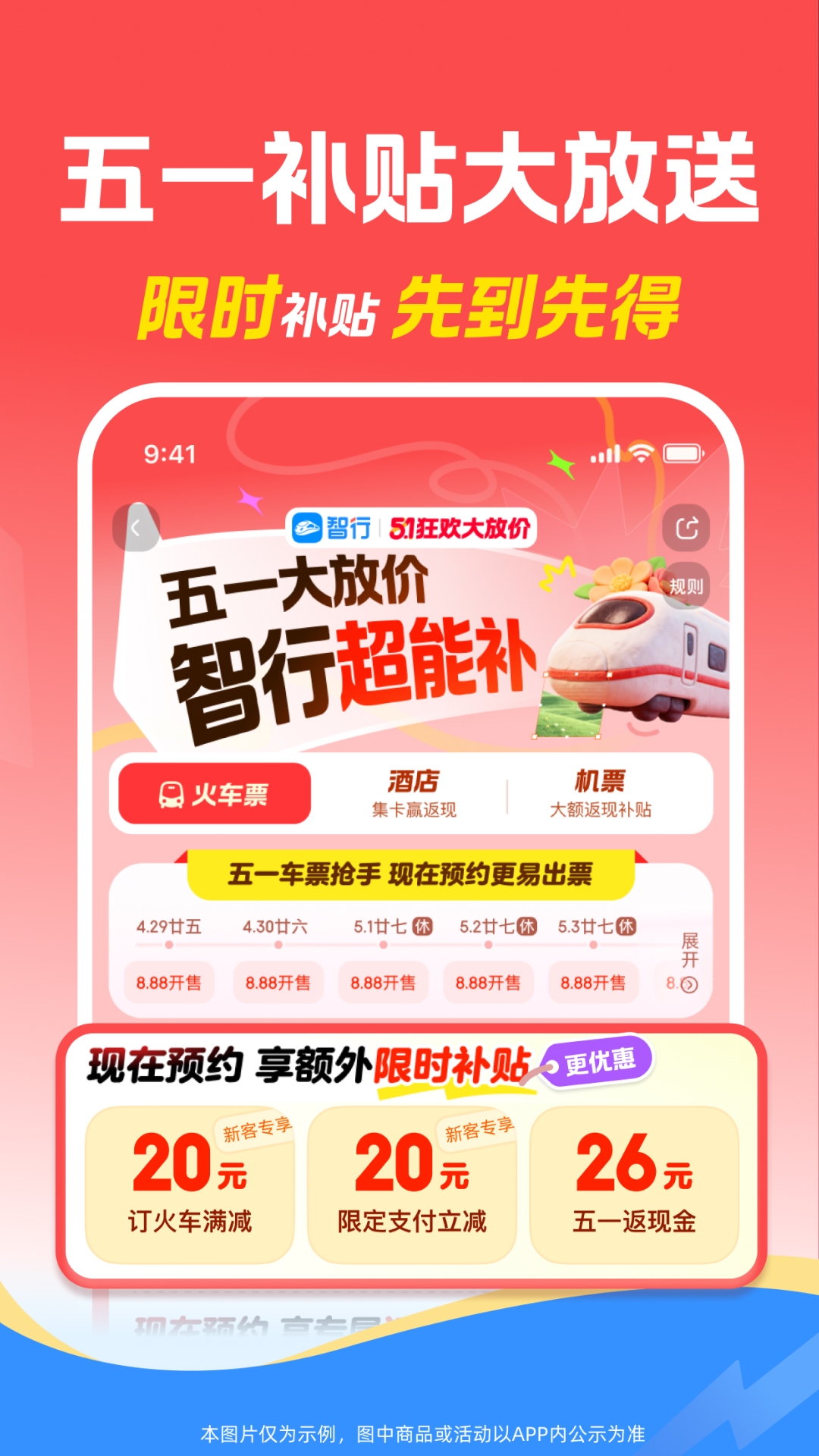 智行火车票-火车票、机票、酒店、汽车票、门票、船票一站式出行预订平台。 火车出行专家,提供火车开售时间、正晚点、候补改签等一站式出行服务,功能全面助您旅途顺心! 主要产品与服务: 【火车票】 [专业抢票] - 提前预约下单,开售时立即出票;候补有保障,还能抢余票。 [24小时抢] - 可全天24小时抢票,有专人监控出票,专属抢票保障,抢不到就敢赔。 [抢票福利] - 靠窗、下铺免费抢,学生还有全年免费抢票福利,抢不到免费升坐席。 [余票捡漏] - 各条线路隐藏余票一键检索,出行方案多,智能出票,出行解决率高。 [线上选座] - 在线选择心仪座位,下铺、靠窗随心选,座位不满意免费换。 【特价机票】 买机票,先来智行比价,全球低价尽在智行。 【低价酒店】 低价监控,有房监控,品质酒店、低价好房不错过。 【新人大礼包】 活动时间:即日起至2026年6月30日,智行新用户(指未在智行平台(包括智行火车票APP、智行旅行APP或小程序)下单过的用户)在APP内登录即可领取,礼包内容如下: [价值130元,火车权益] -火车票立减8元,立享L4托管服务,抢不到赔100元礼包,智行助你成功买票。 [价值45元,机票优惠券] - 15元机票国内立减券+30元国际立减券,国内国际随心飞,更享买贵赔服务。 [价值380元,酒店优惠券] - 80元国内酒店满减券,搭配酒店新客权益,折上折更实惠。 详情以活动内容规则为准 【酒店新客大礼包】 活动时间:即日起至2026年12月31日,智行酒店新用户(没有酒店成交订单的用户)APP内登录即可领取,礼包包含如下内容: [酒店80元优惠券] - 酒店新客首次预订可享受大额补贴,领取后15天内有效,可与黑钻会员价叠加使用。 [酒店体验黑钻会员,价值99元] - 酒店新客首次订房可体验黑钻会员专享价,预订酒店85折,且可与优惠券叠加使用。 [酒店200元满减券] - 酒店新客首次预订可享受大额补贴,领取后90天内有效,可与黑钻会员价叠加使用。 [其他权益]首次预订赠送600积分,最高可抵6元!部分酒店还可使用10元立减券,享受免费早餐、免费取消时段延长、延迟退房、房型升级等权益! 详情以活动内容规则为准